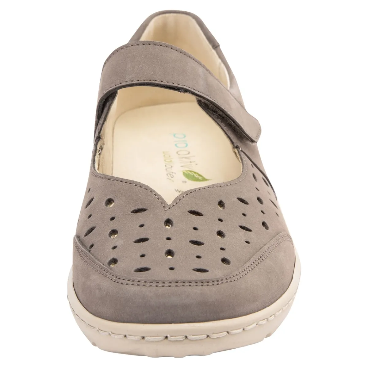 Sommerlicher Chic mit Luftlöchern. Ansprechende Optik mit besonderem Komfort kombiniert. Funktioneller Klettverschluss zum einfachen An- und Ausziehen. Ideal für sensible Füße: die leichte PU-Sohle, die luftgepolsterte herausnehmbare Einlegesohle und die Bequemweite H.