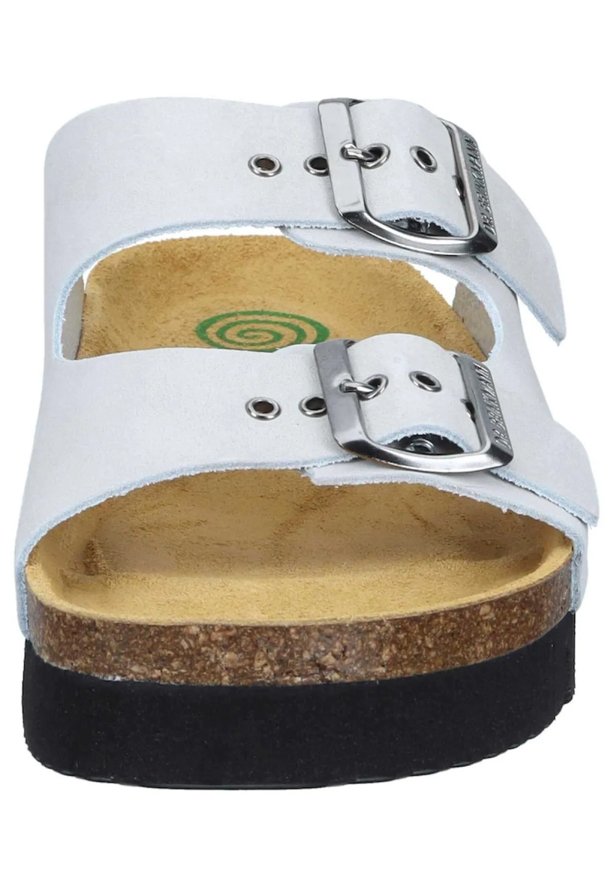 Bei diesem Produkt handelt es sich um einen Schuh aus der Kategorie Klassische Pantoletten für Damen. Als Obermaterial wurde Nubukleder verwendet und im inneren Bereich des Schuhs wurde ungefüttert und weiche Lederdecksohle, gepolstertes Naturform-Korkfußbett verarbeitet. Die Schuhweite dieses Artikels ist Weite G und somit normal. Als Verschlussart wurde Schlupfschuh gewählt und die Leichtzellsohle rundet das Produkt ab. Der Artikel fällt normal aus, bitte die gewohnte Größe bestellen. – Schuhweite: Weite G –