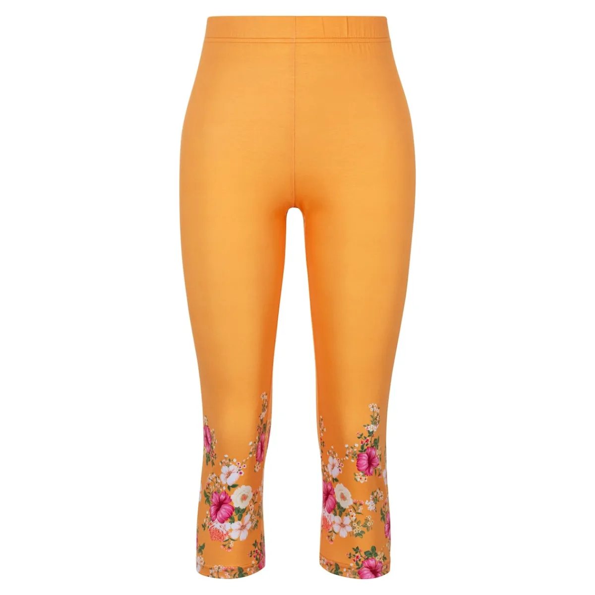 Die bequeme Capri-Leggings mit floralen Ornamenten am Beinabschluss überzeugt durch ihren dehnbaren Komfortbund und das angenehm weiche Material, das für eine perfekte Passform und höchsten Tragekomfort sorgt.