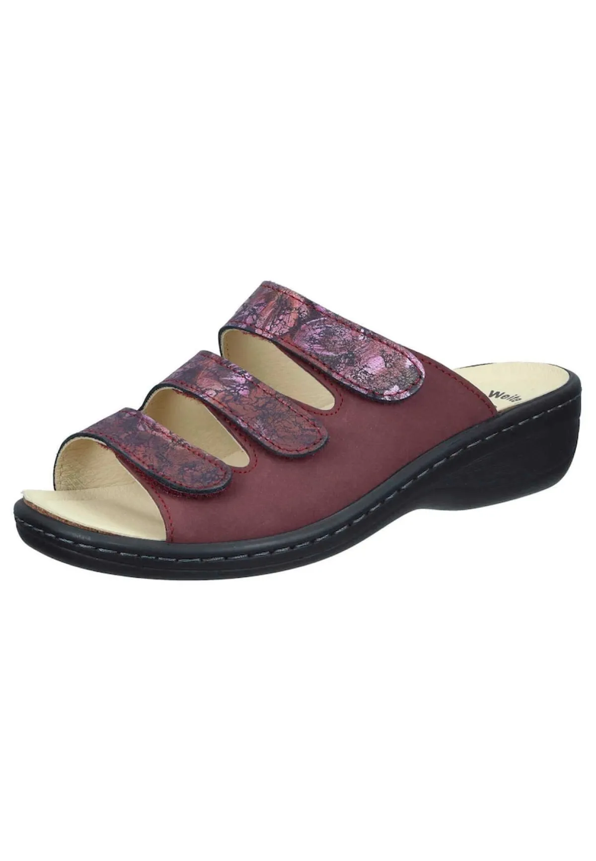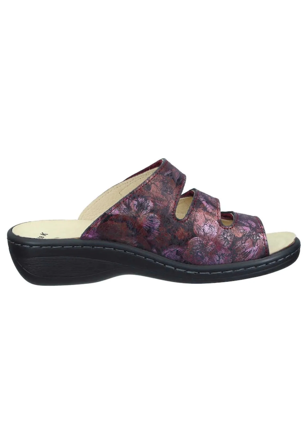 Bei diesem Produkt handelt es sich um einen Schuh aus der Kategorie Komfort-Pantoletten für Damen. Als Obermaterial wurde Nubukleder verwendet und im inneren Bereich des Schuhs wurde Lederfutter und Lederdecksohle, gepolstertes Naturform-Fußbett verarbeitet. Die Schuhweite dieses Artikels ist Weite K und somit für sehr kräftige Füße. Als Verschlussart wurde Schlupfschuh gewählt und die PU-Sohle mit Gummiintarsie rundet das Produkt ab. Der Artikel fällt normal aus, bitte die gewohnte Größe bestellen. – Schuhweite: Weite K –