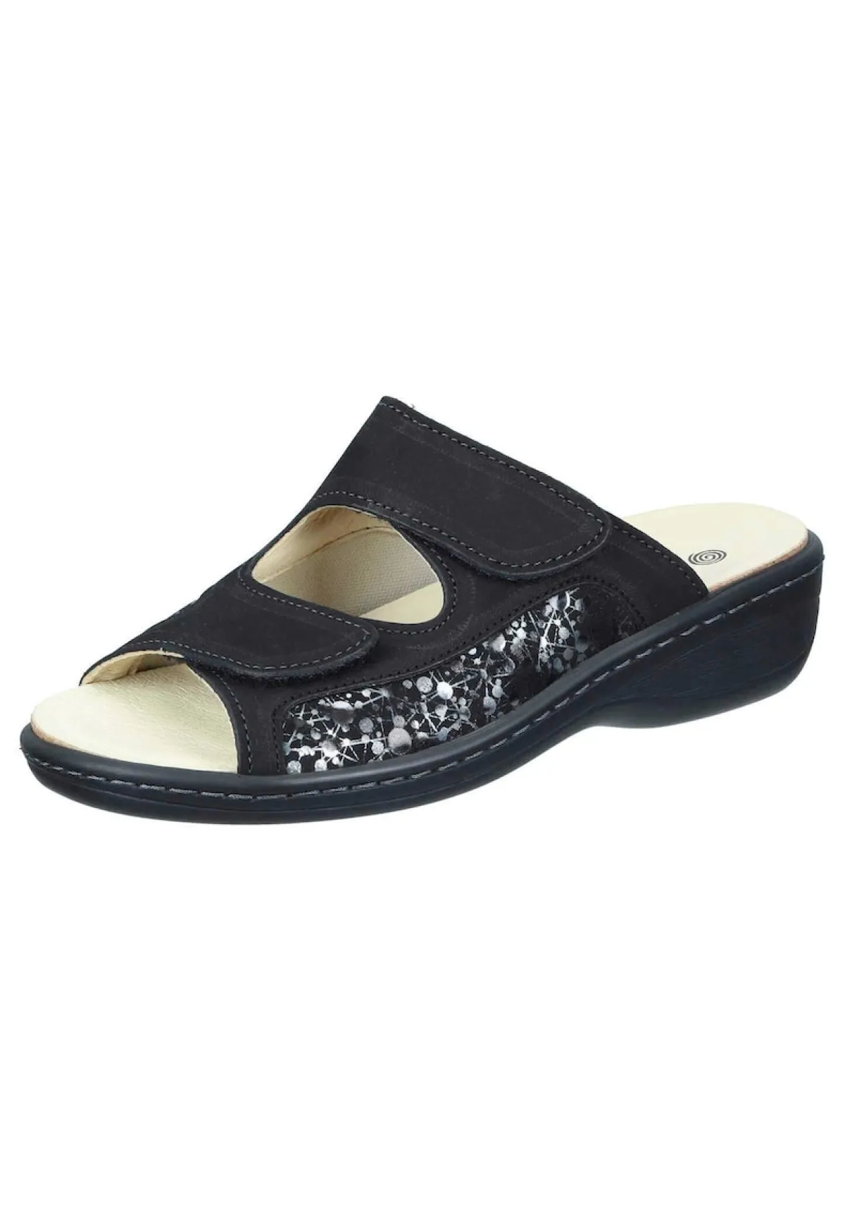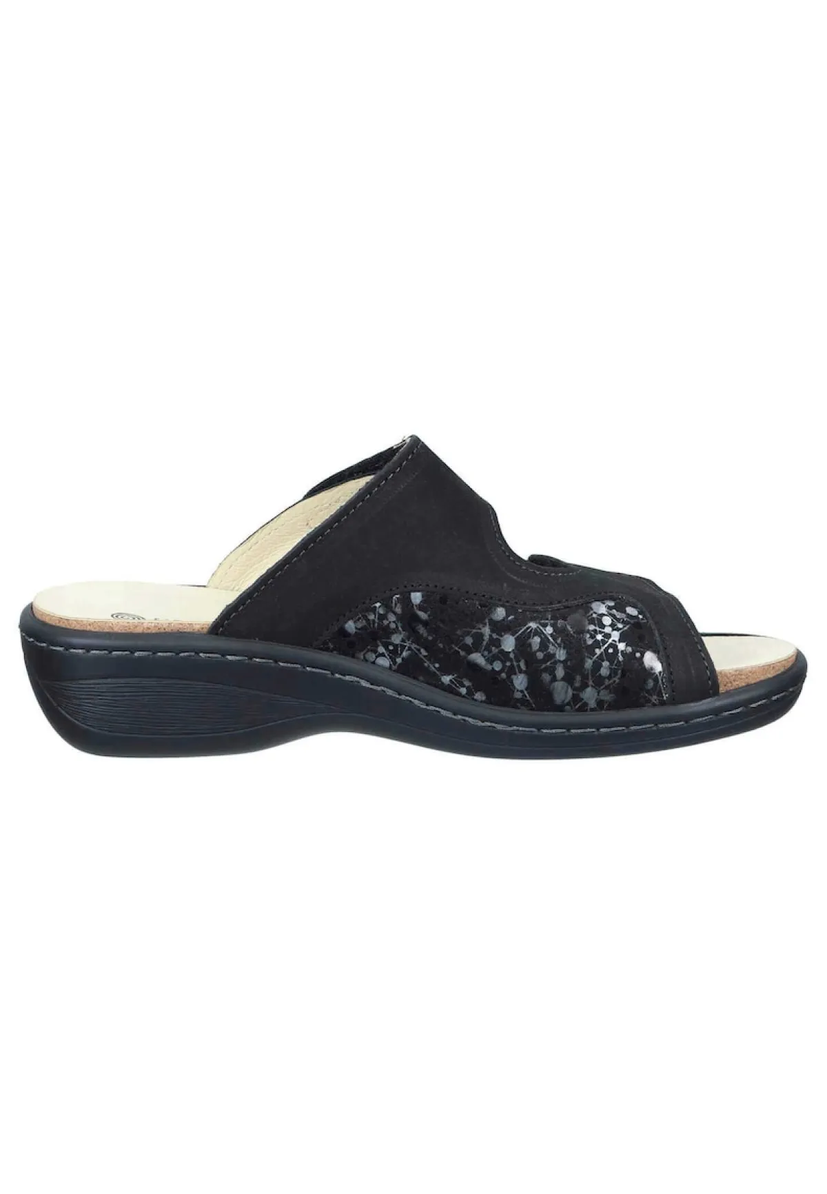 Bei diesem Produkt handelt es sich um einen Schuh aus der Kategorie Klassische Pantoletten für Damen. Als Obermaterial wurde Nubukleder verwendet und im inneren Bereich des Schuhs wurde Lederfutter und herausnehmbares gepolstertes Naturform-Fußbett verarbeitet. Die Schuhweite dieses Artikels ist normal und somit standard. Als Verschlussart wurde Schlupfschuh gewählt und die PU-Sohle mit Gummiintarsie rundet das Produkt ab. Der Artikel fällt normal aus, bitte die gewohnte Größe bestellen. – Schuhweite: normal –