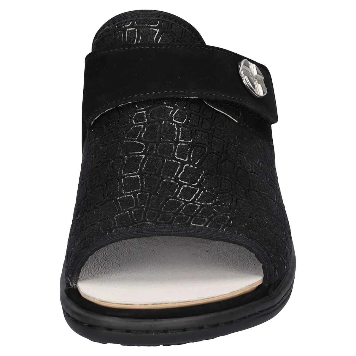 Stilvolle Eleganz mit vielseitigem Komfort kombiniert. Nubukleder und Textil verleiht der Pantolette eine langlebige und hochwertige Optik. Das Lederfutter bietet atmungsaktiven Komfort und ein angenehmes Tragegefühl. Die leichte PU-Sohle sorgt für sicheren Halt und bequemen Gang. Ein praktischer Klettverschluss ermöglicht eine einfache Anpassung.