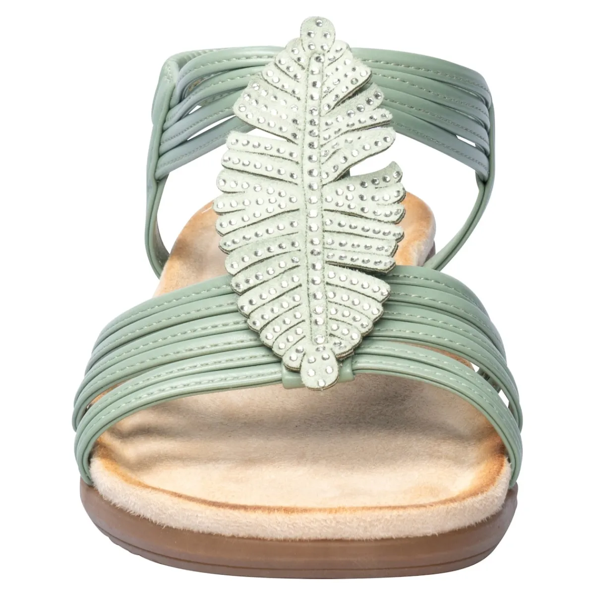 Mit Leichtigkeit in den Sommer! Diese Sandale mit weicher Decksohle macht ihrem Namen alle Ehre. Den Rist ziert eine filigrane Federapplikation mit Glitzersteinchen, die in der Sonne funkeln. Dank elastischem Riemchen an der Ferse ist sie schnell an- und ausgezogen und schenkt Ihnen den ganzen Tag höchsten Tragekomfort. Mit rutschhemmender Laufsohle.