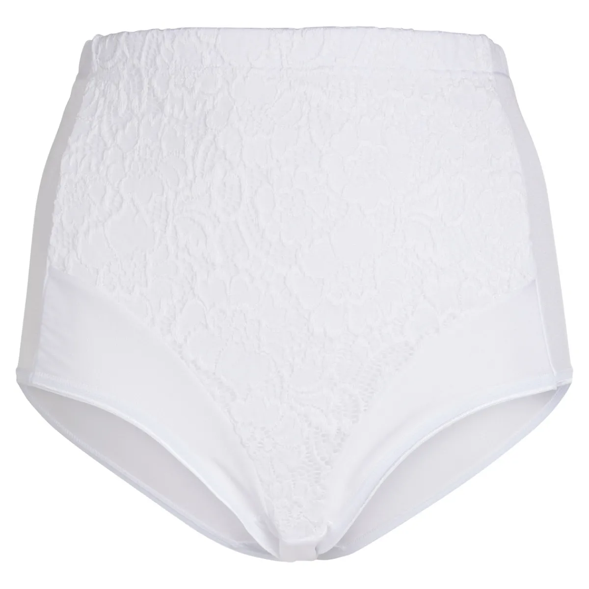 Der Stützeinsatz vorn aus elastischer Spitze sorgt für einen optisch flacheren Bauch. Strukturierte, trageangenehme Qualität.