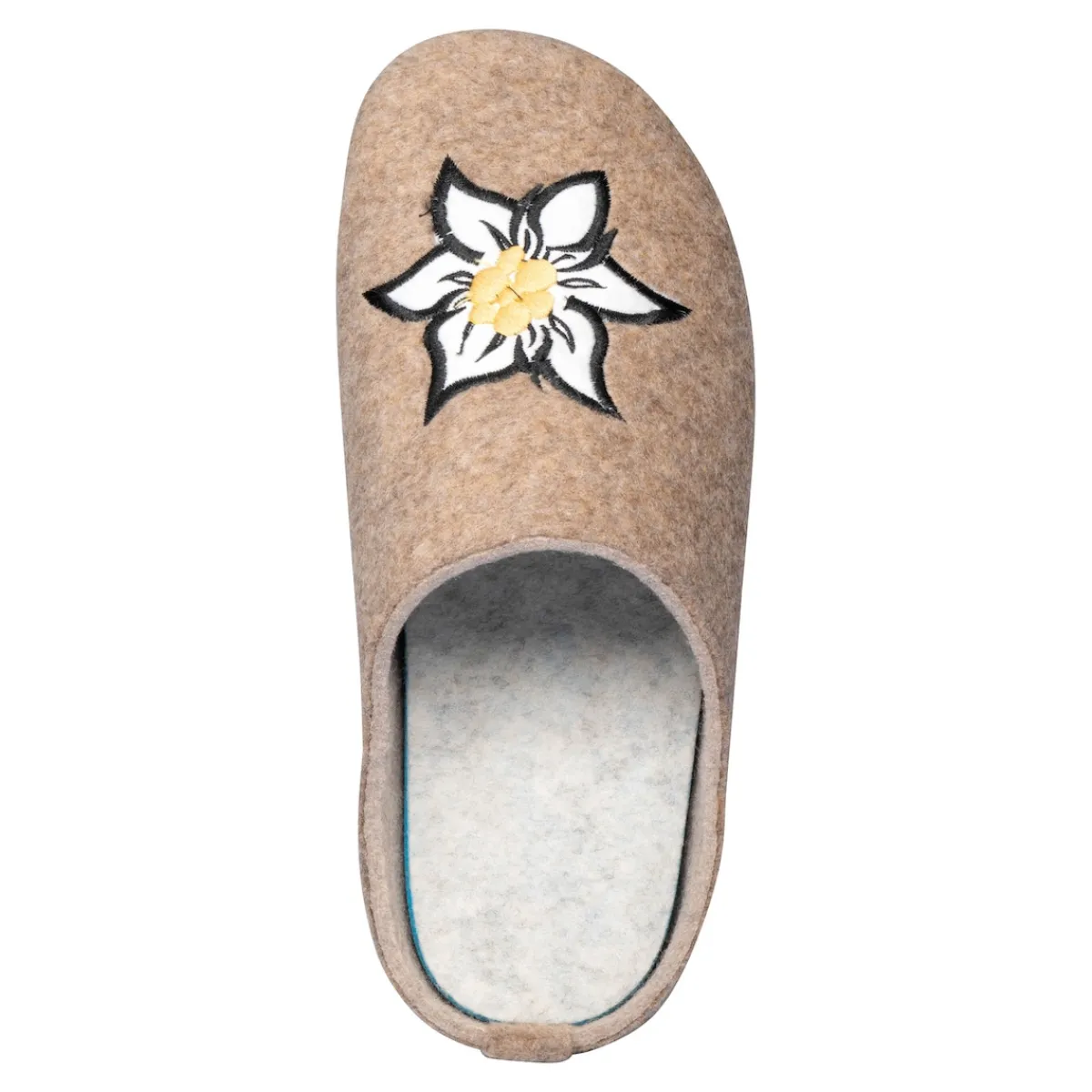In dieser bequemen und leichten Filz-Pantolette mit auffälliger Edelweiß-Stickerei werden sich Ihre Füße rundum wohlfühlen. Dank der rutschhemmenden Gummi-Laufsohle ist auch ein Gang nach draußen problemlos möglich. Mit herausnehmbarer Einlegesohle.