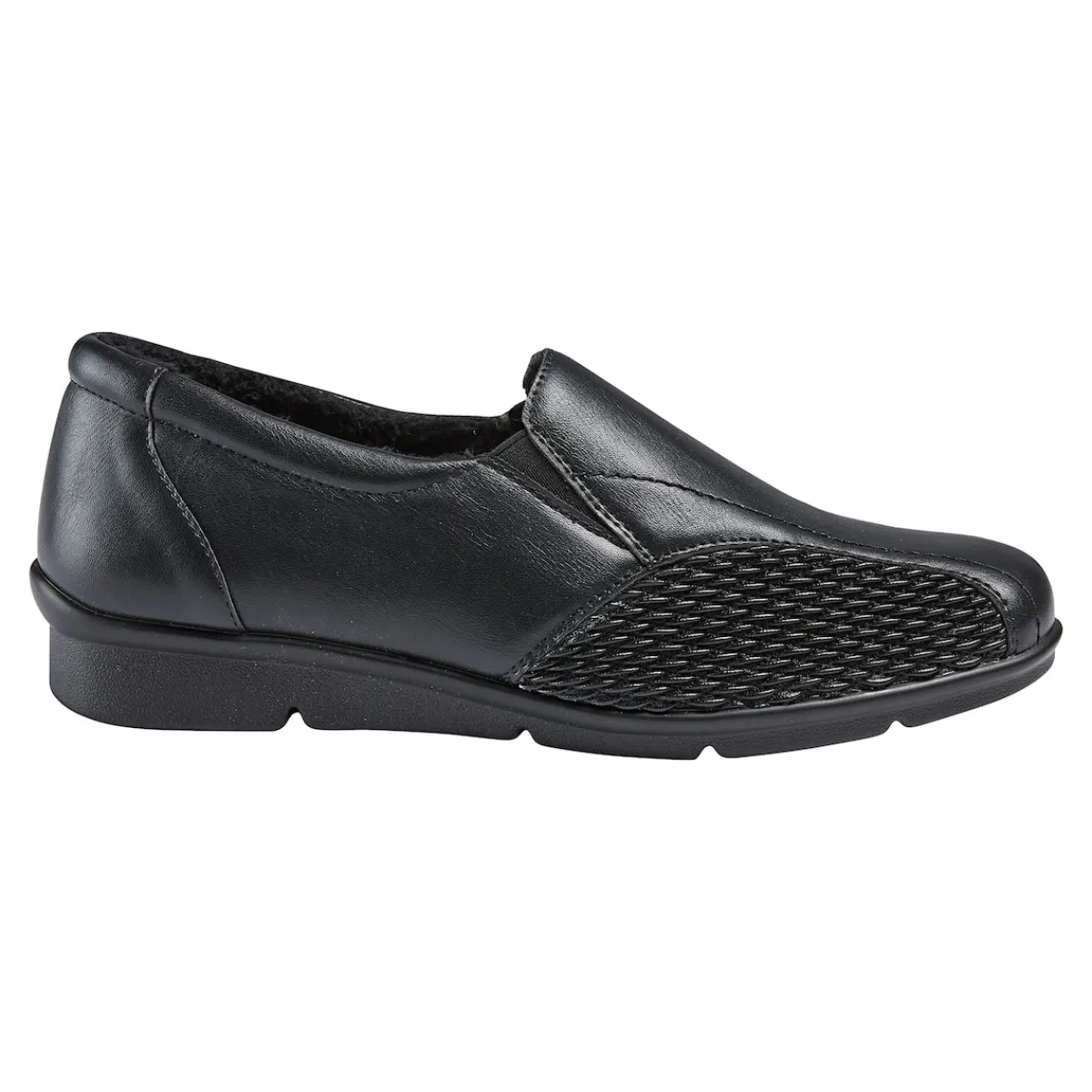 Ob zum Rock oder zur Hose – dieser leichte und elegante Halbschuh in Lederoptik von WONDERWALK ist mit seinem warmen Futter auch in der Übergangszeit der perfekte Begleiter! Seitlich mit elastischen Einsätzen für einen bequemen Ein- und Ausstieg.