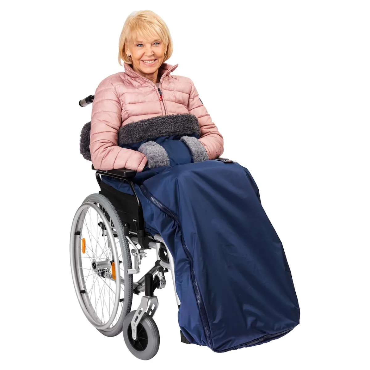 Wer sich wenig bewegen kann, braucht´s besonders warm. Kann mit Klettverschluss am Schlupfsack befestigt werden. Auch separat zu tragen.