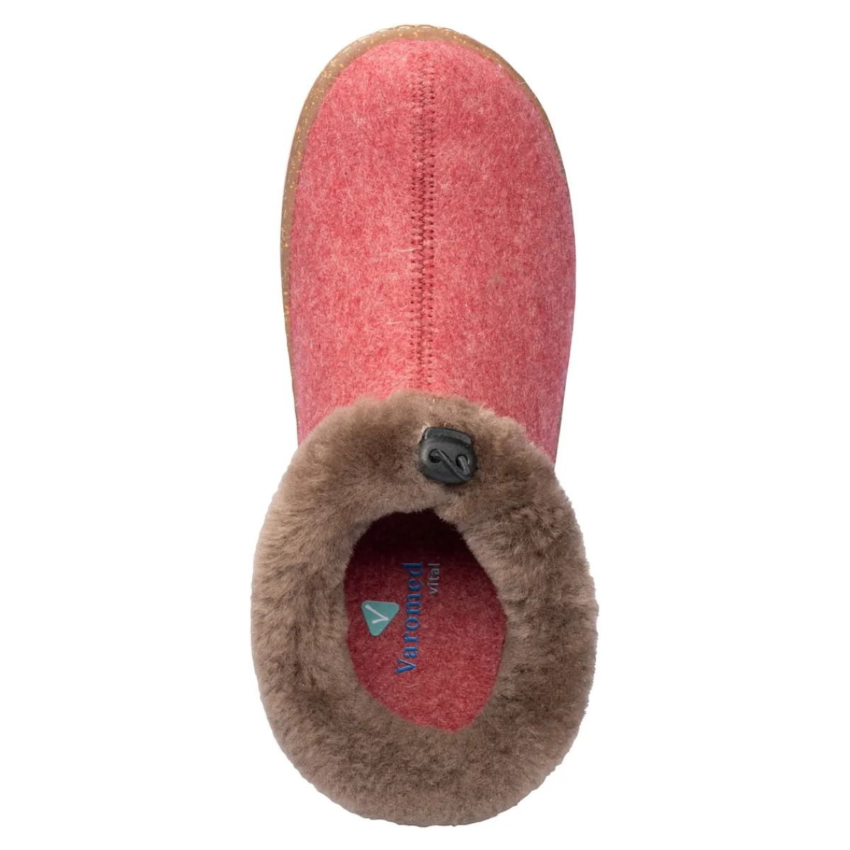 Gemütlicher Hausschuh mit angenehmer Keilhöhe aus robustem Filzmaterial. Durch den Gummizug an den Fuß anpassbar für optimalen Halt. Die bequeme, natürliche Fußform und die PU-Sohle sorgen für ein herrliches, wolkenweiches Gehgefühl. Herausnehmbar Einlegesohle, durch persönliche Einlagen ersetzbar.