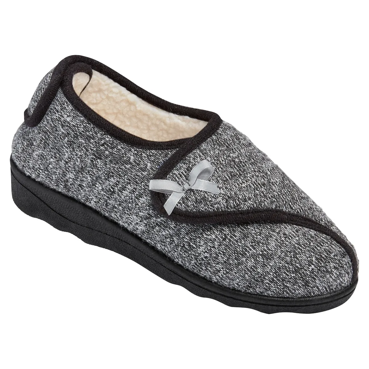 Dieser Hausschuh von WONDERWALK hat viel zu bieten: superbequem und mollig warm, zeigt er sich rundum komfortabel! Dank seiner Klettverschlüsse an der Ferse und seitlich über dem Rist lässt er sich einfach und schnell an- und ausziehen sowie optimal jedem Fuß anpassen – für einen zuverlässigen Sitz, ohne einzuengen. Ideal auch bei Hallux valgus. Mit rutschhemmender Gummi-Laufsohle für einen sicheren Tritt, auch im Freien.
