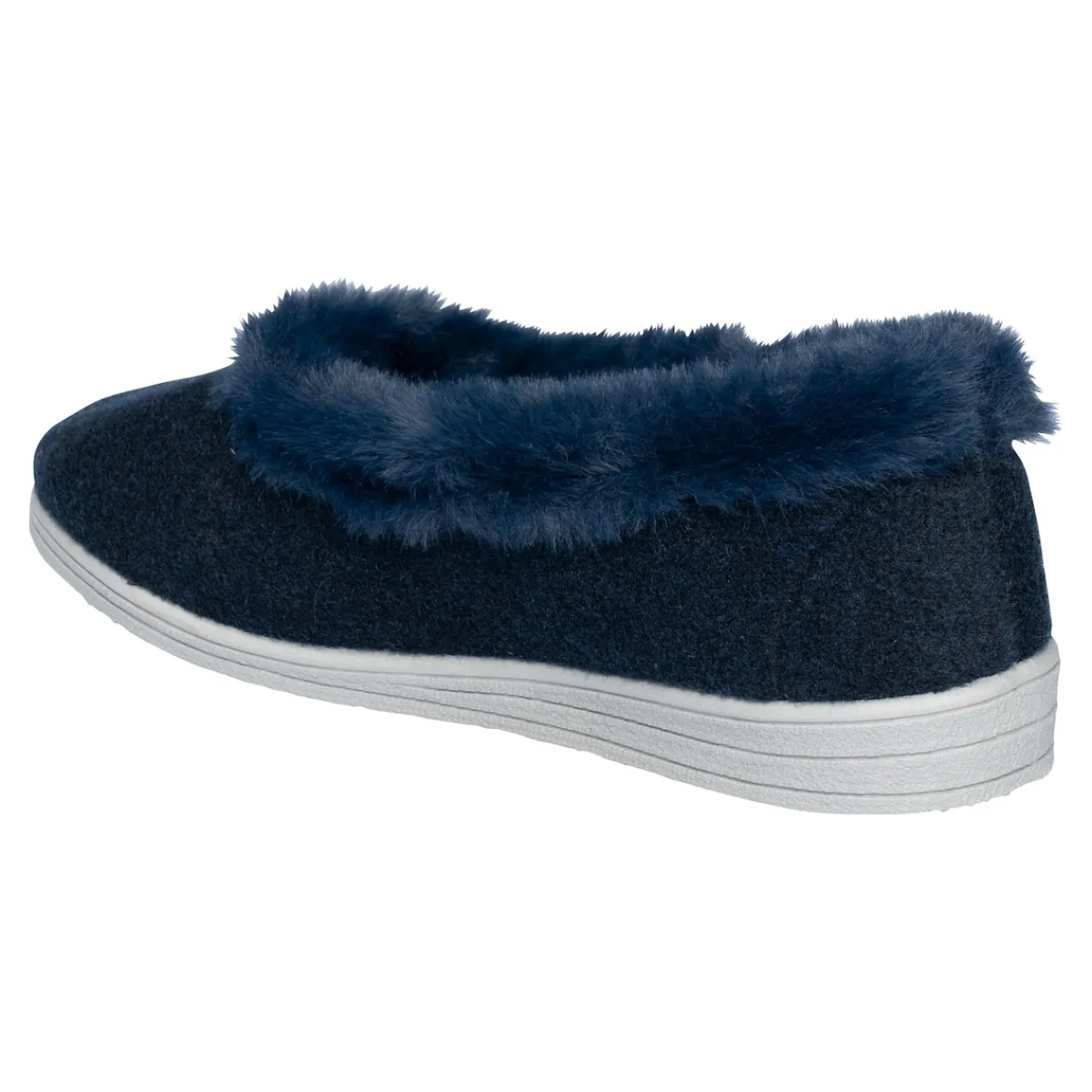 Schicker Hausschuh der Ihre Füße wohlig warm hält. Abgerundet mit weichem Kunstfell am oberen Rand.