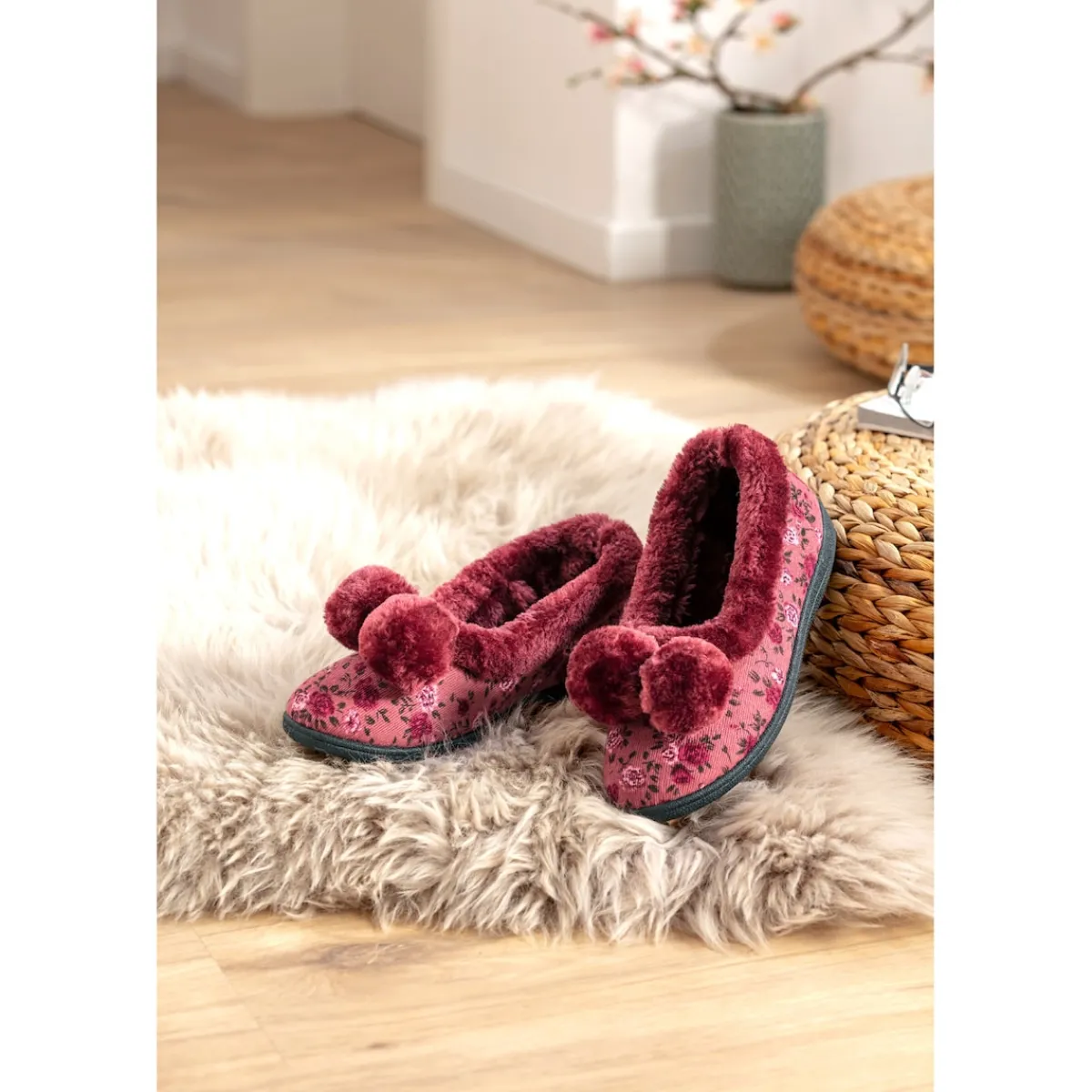 Komplett kuschelig warm gefüttert und extrem flexibel: Unser für Sie ausgewähltes Modell „Helga“ bietet festen Halt und doch ein federleichtes Tragegefühl! Das charmante Blumenmuster im Landhausstil und der üppige Kunstfellbesatz mit Bommeln sorgen für eine extra feminine Optik. Mit rutschhemmender Laufsohle.