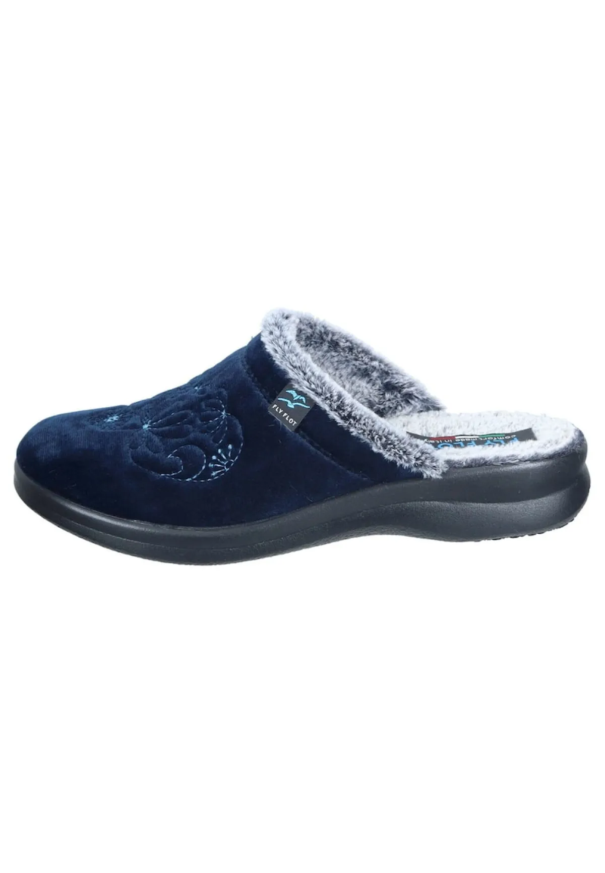 Bei diesem Produkt handelt es sich um einen Schuh aus der Kategorie Klassische Hausschuhe für Damen. Als Obermaterial wurde Textil verwendet und im inneren Bereich des Schuhs wurde ungefüttert und gefütterte Decksohle verarbeitet. Die Schuhweite dieses Artikels ist normal und somit standard. Als Verschlussart wurde Schlupfschuh gewählt und die PU-Sohle rundet das Produkt ab. Der Artikel fällt normal aus, bitte die gewohnte Größe bestellen. – Schuhweite: normal –
