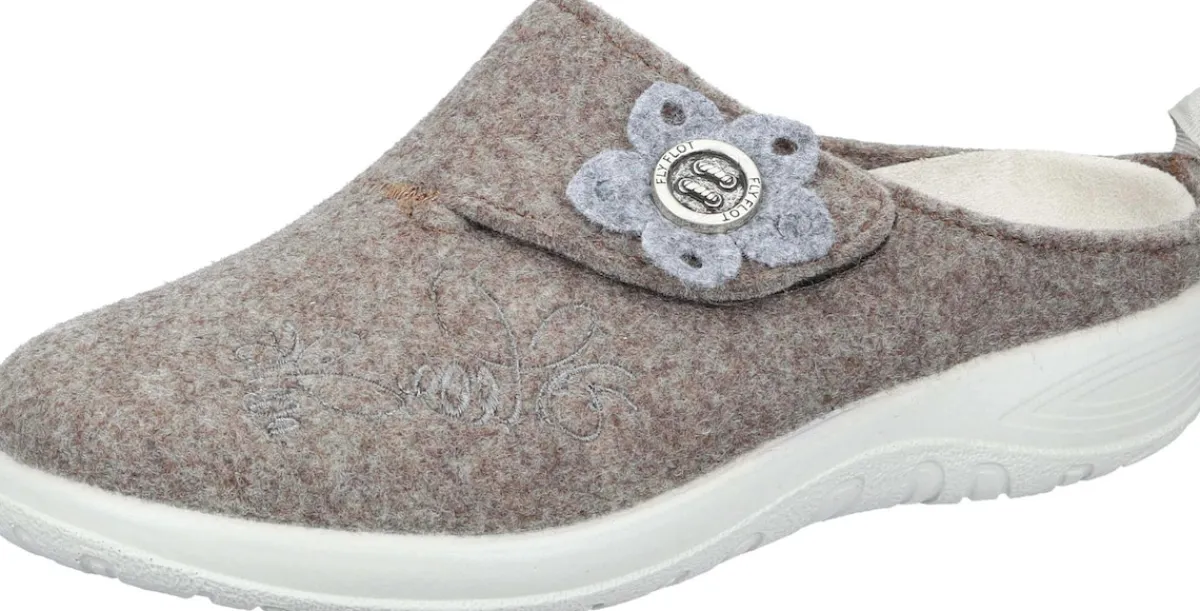 Bei diesem Produkt handelt es sich um einen Schuh aus der Kategorie Klassische Hausschuhe für Damen. Als Obermaterial wurde PET verwendet und im inneren Bereich des Schuhs wurde ungefüttert und herausnehmbare Textildecksohle verarbeitet. Die Schuhweite dieses Artikels ist normal und somit standard. Als Verschlussart wurde Schlupfschuh gewählt und die PU-Sohle rundet das Produkt ab. Der Artikel fällt normal aus, bitte die gewohnte Größe bestellen. – Schuhweite: normal –