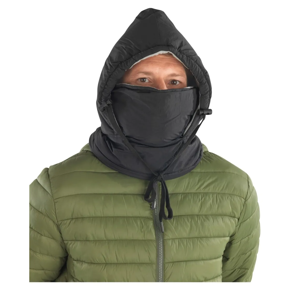 Komfortabler Schutz bei jedem Wetter! Kann als Kapuze, Regenschutz-Haube sowie als Halswärmer oder Mund- und Nasenschutz getragen werden. Doppellagiges bietet eine perfekte Isolation bei Kälte und Wind. Dank Kordelzug individuell anzupassen. Universalgröße.