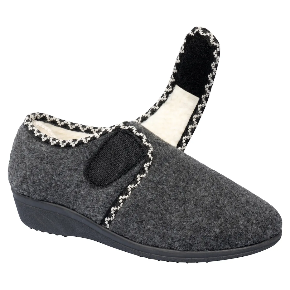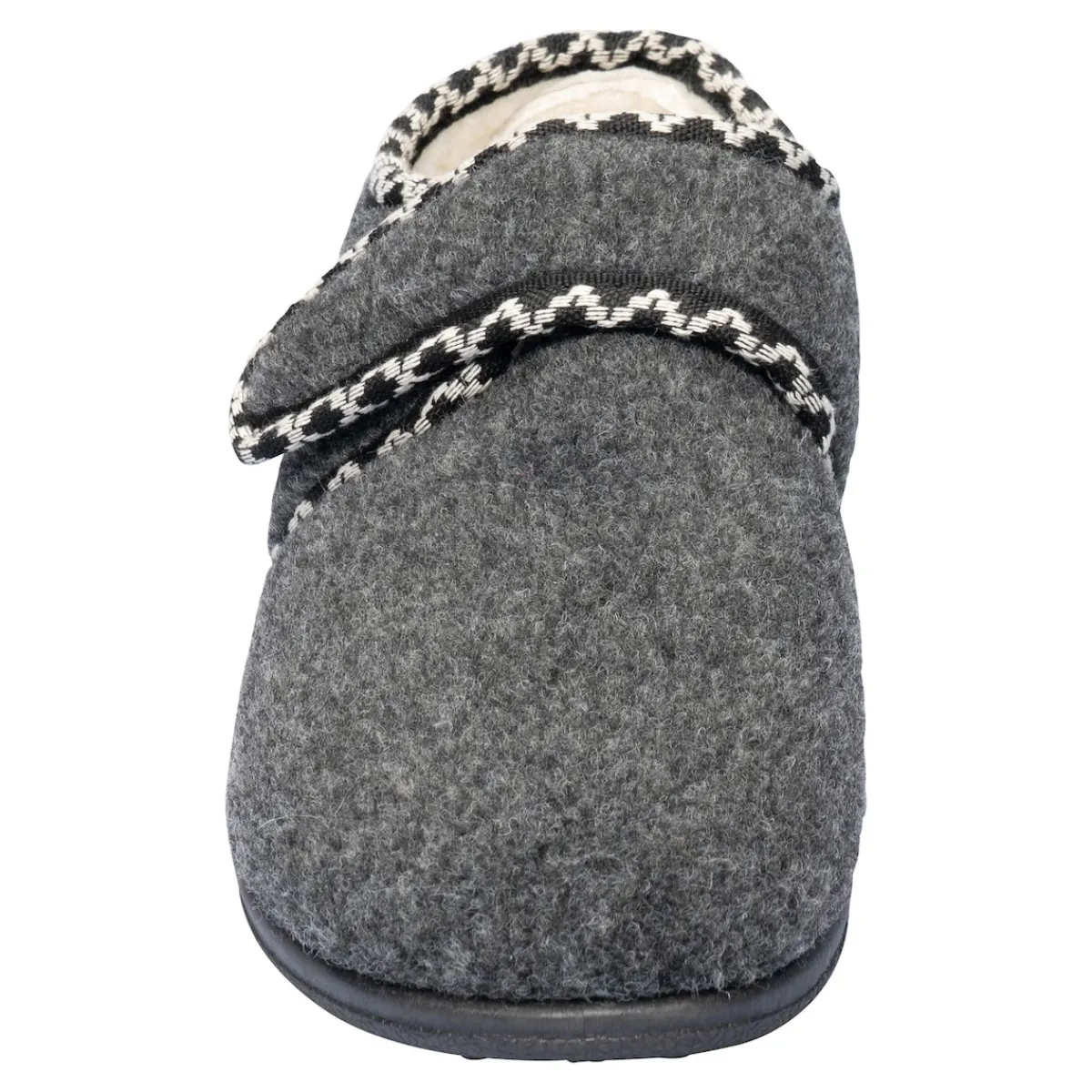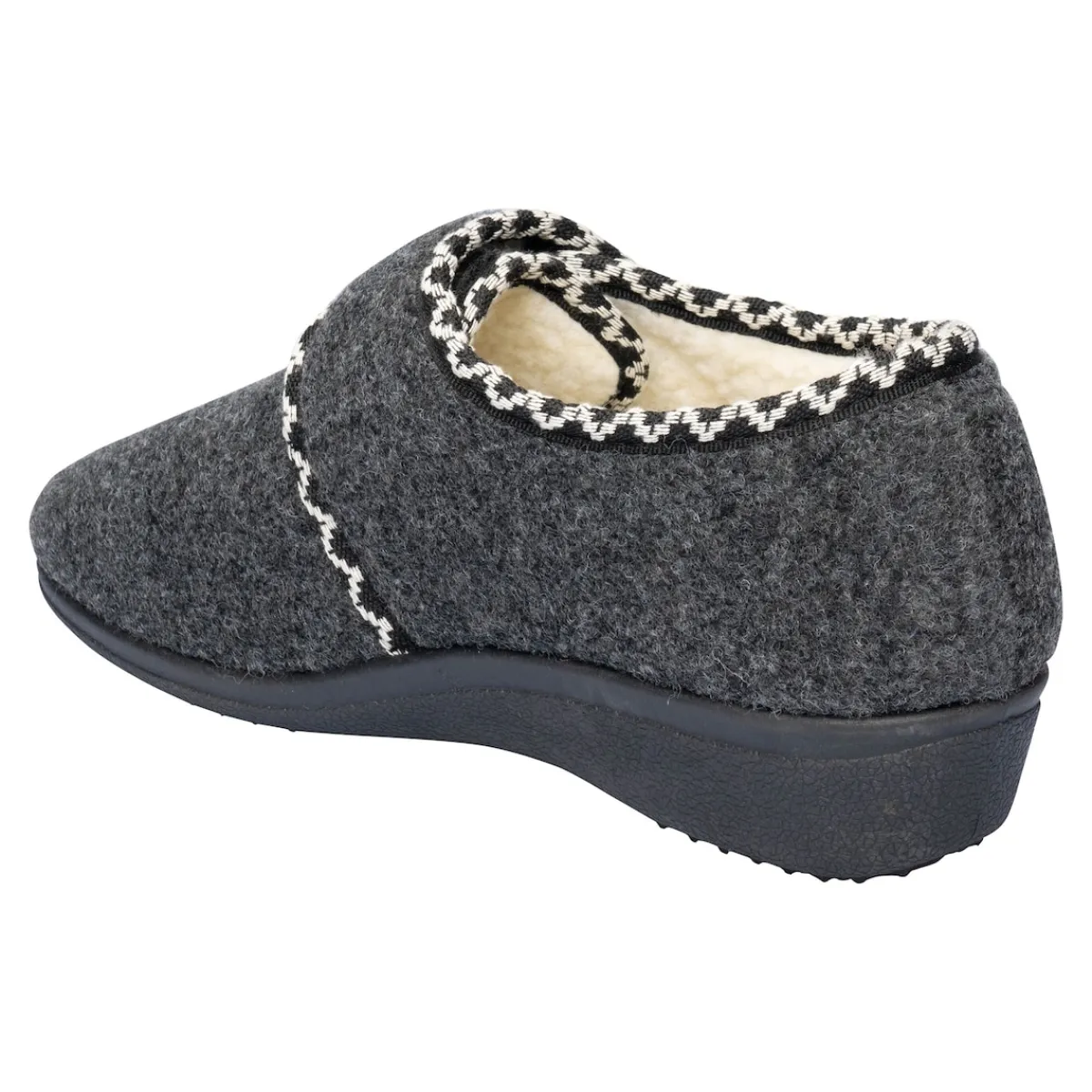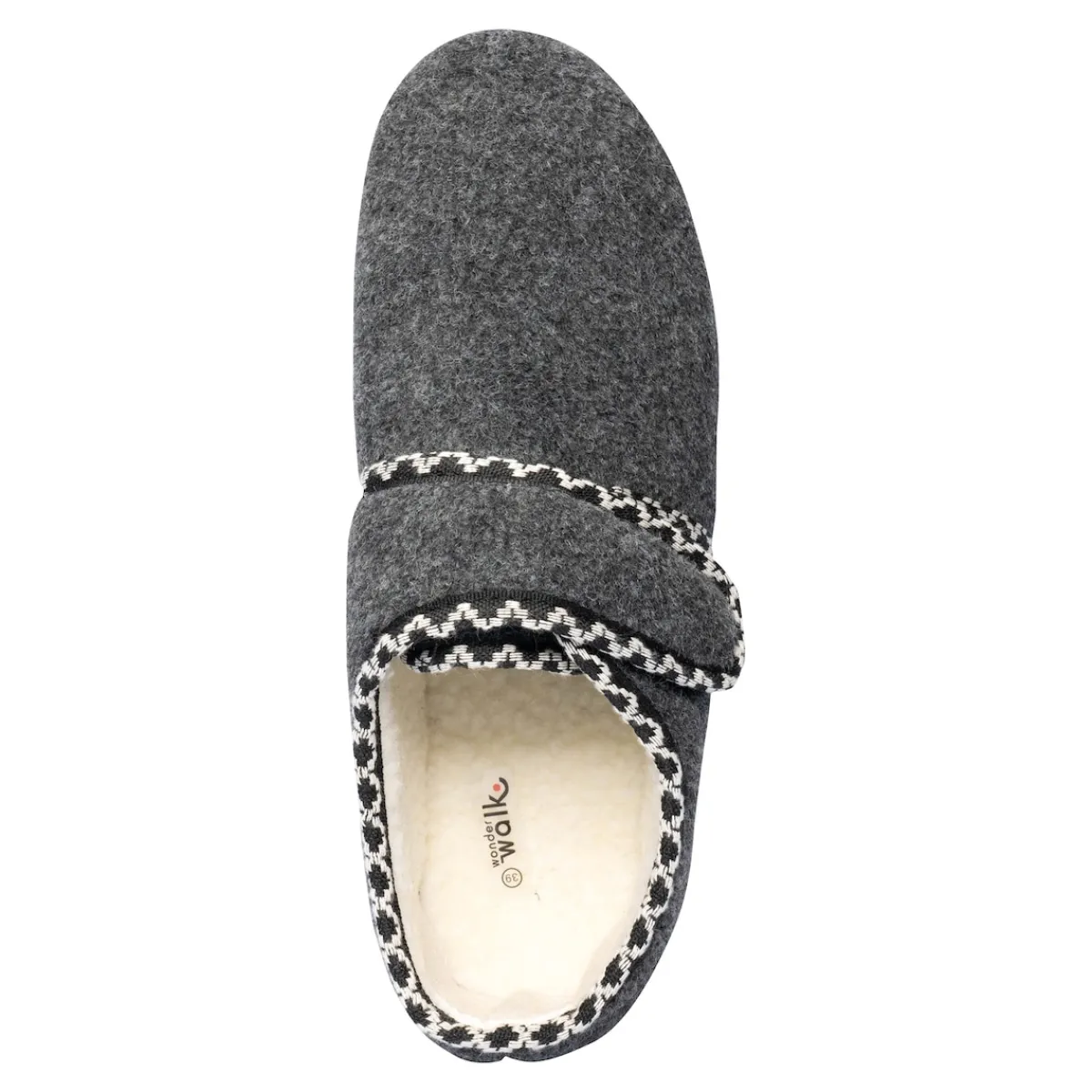 Kuscheliges Wohlgefühl für Ihre Füße an kälter werdenden Tagen: Dieser Hausschuh mit weichem Innenfutter aus Wolle wärmt angenehm und sorgt für ein ideales Fußklima. Dank Klettverschluss können Sie den Schuh leicht an- und ausziehen sowie optimal an Ihren Fuß anpassen. Die rutschhemmende Laufsohle hält auch dem kurzen Gang ins Freie stand.