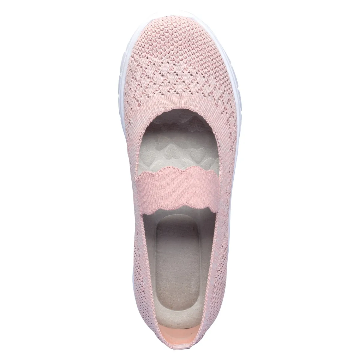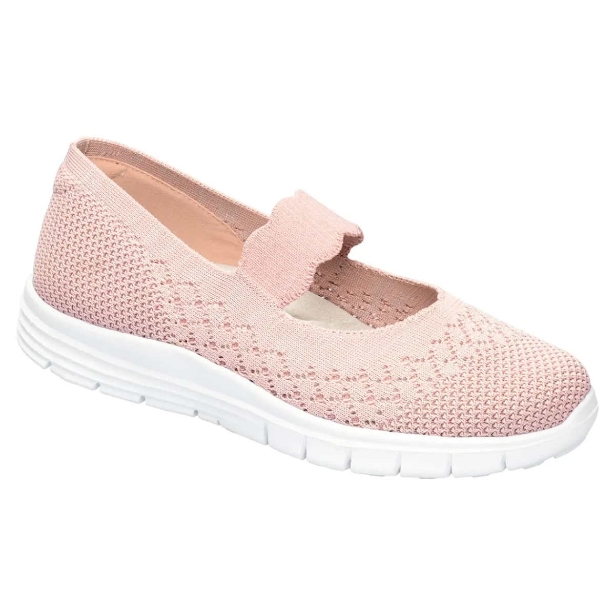 Dieser Ballerina verbindet Stil und Komfort auf perfekte Weise. Das luftdurchlässige Meshmuster sorgt für eine angenehme Belüftung, während das flexible Stretch-Riemchen Ihren Fuß sicher hält. Mit der rutschhemmenden Laufsohle erleben Sie sicheren Halt auf jedem Untergrund. Genießen Sie den Sommer mit einem leichten, eleganten Schuh, der Ihnen jeden Schritt angenehm macht. Ideal für einen frischen und stilvollen Auftritt!