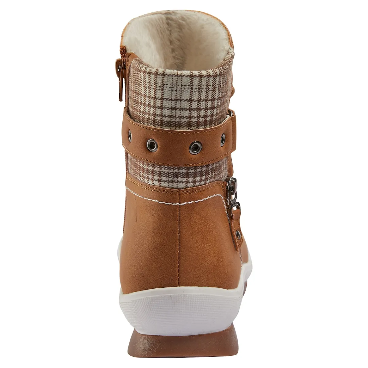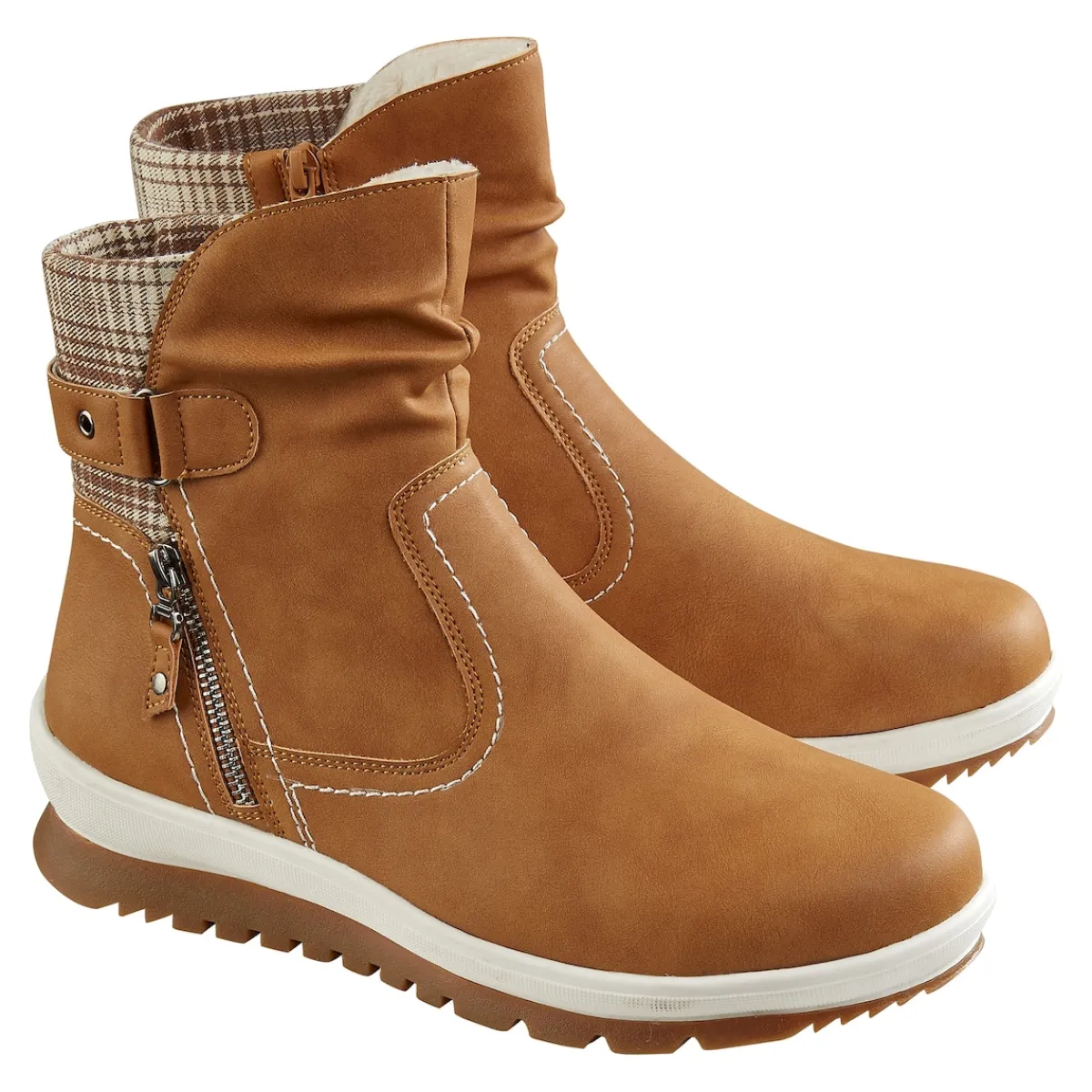 Die Komfort-Kurzstiefelette „Lisa“ verbindet modische Eleganz mit einzigartigem Komfort. In Leder-Optik mit trendiger Profilsohle präsentiert sie sich mit raffinierten Details wie einem Zierreißverschluss, einem Fersenband mit Metallösen und einem gepolsterten Karo-Einsatz hinten.