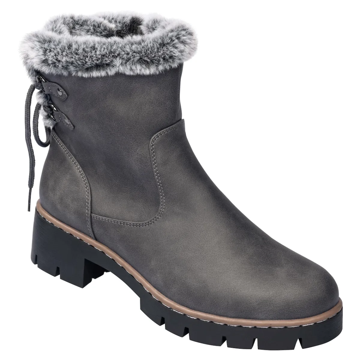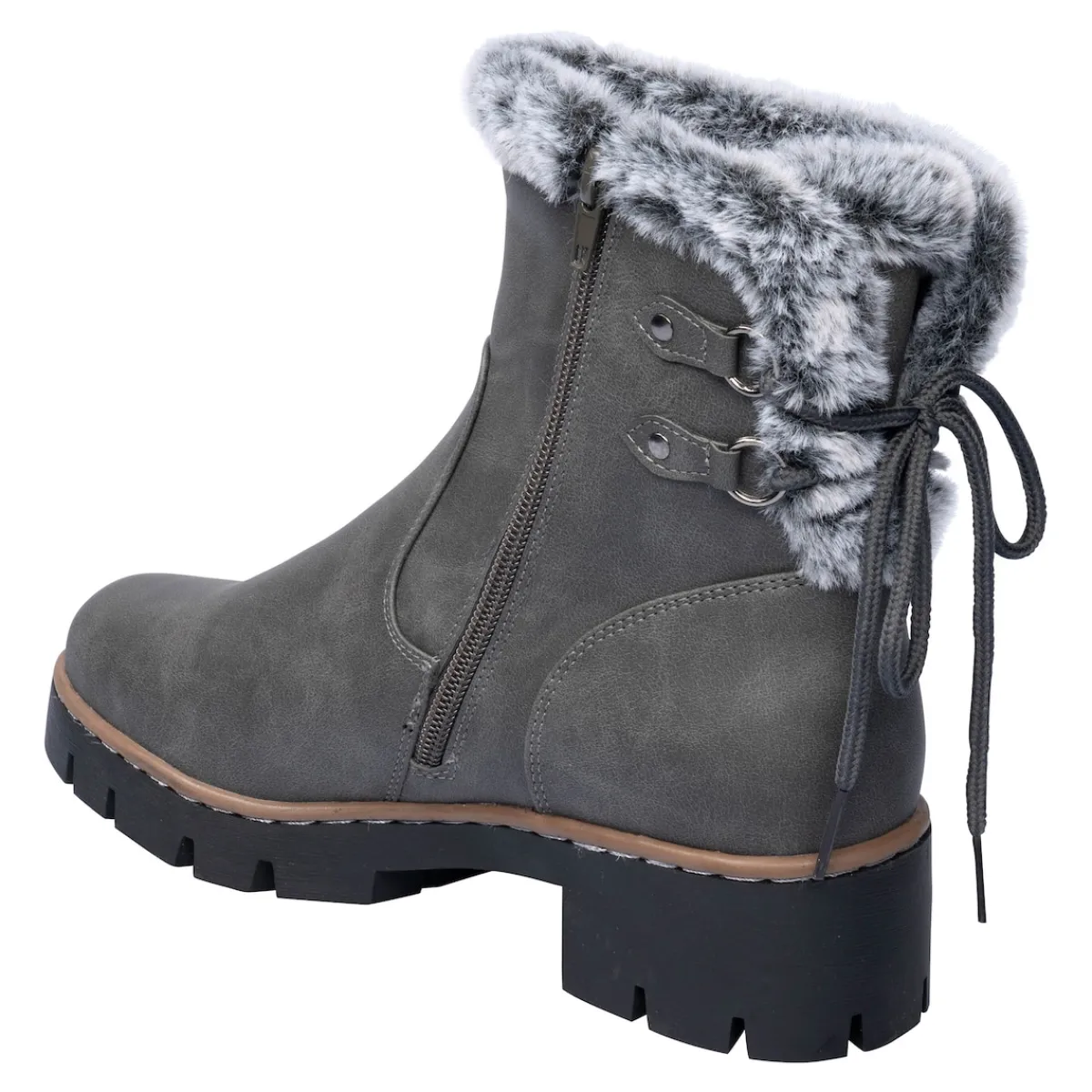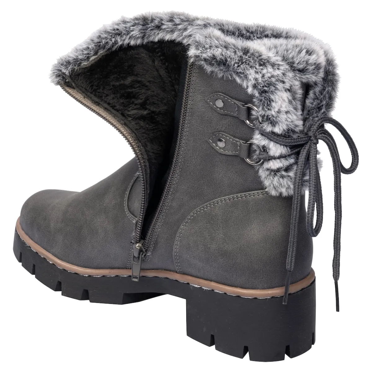 Mit diesem warm gefütterten Winter-Boot spazieren Sie mit Leichtigkeit durch die kalte Jahreszeit. Dank schicker Schnürung, die sich auch stärkeren Waden optimal anpasst, sorgen Sie im Handumdrehen für einen bequemen Sitz. Modische Highlights wie der warme Kunstpelzrand und die bequeme Blockabsatzhöhe runden zusammen mit der weichen Decksohle und der rutschhemmenden Profil-Laufsohle den Tragekomfort perfekt ab.