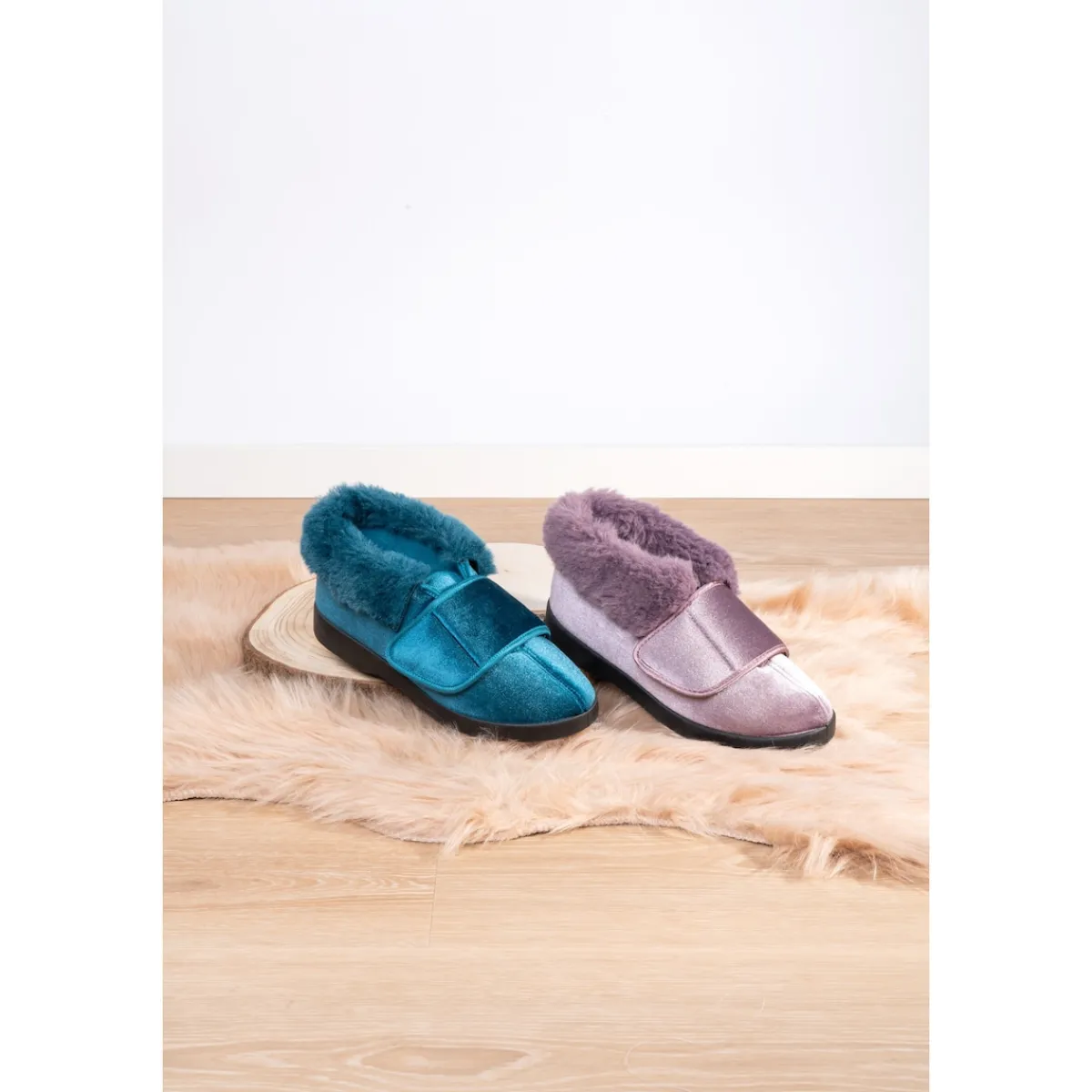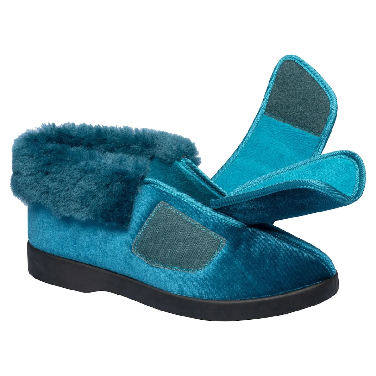 Be the first to review “Damen Die moderne Hausfrau Kuschel-Kletthausschuh „Carmen“ petrol” Antworten abbrechen