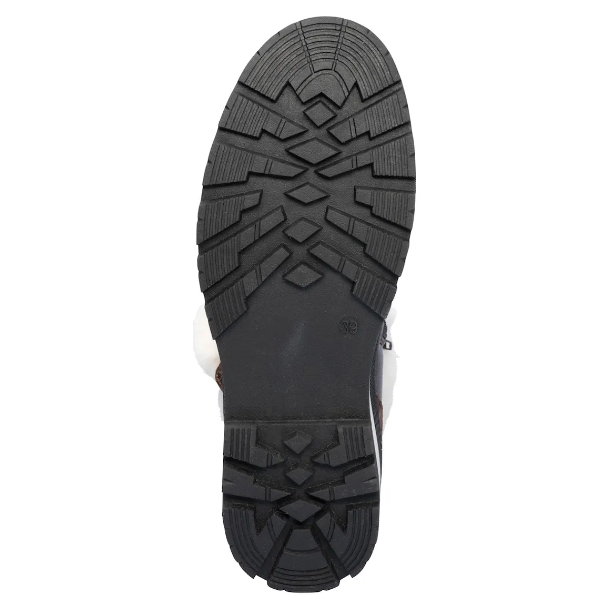 Mit diesem gefütterten Stiefel in Leder-Optik trotzen Sie der Kälte mit Leichtigkeit. Das Wollfutter hält Ihre Füße schön warm und verleiht Ihnen ein angenehmes Tragegefühl. Durch den flexiblen Schlitz am Schaft passt er sich Ihrer Wade perfekt an. Der Leo-Einsatz, Kunstpelzrand und die Metallspange an der Ferse verleihen ihm eine trendige Note. Mit rutschhemmender Profil-Laufsohle.