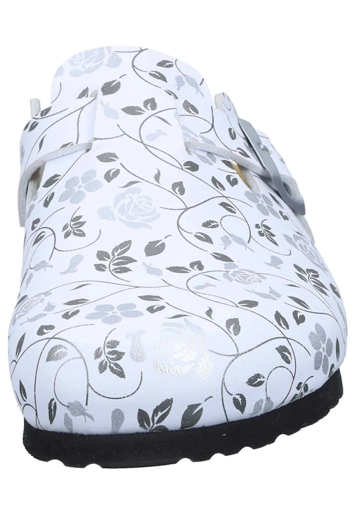 Bei diesem Produkt handelt es sich um einen Schuh aus der Kategorie Clogs ohne Absatz für Damen. Als Obermaterial wurde Flor verwendet und im inneren Bereich des Schuhs wurde ungefüttert und Lederdecksohle, gepolstertes Naturform-Korkfußbett verarbeitet. Die Schuhweite dieses Artikels ist Weite G und somit normal. Als Verschlussart wurde Schlupfschuh gewählt und die Leichtzellsohle rundet das Produkt ab. Der Artikel fällt normal aus, bitte die gewohnte Größe bestellen. – Schuhweite: Weite G –