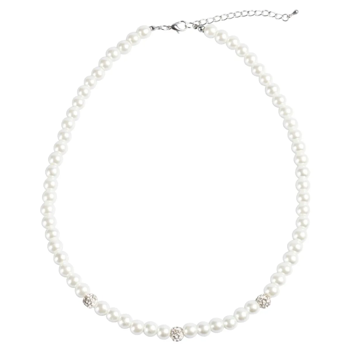 Mit dieser zeitlosen Halskette zeigen Sie sich von Ihrer eleganten Seite. Die Kombination aus funkelnden Glasperlen und schimmernden Tonperlen, verziert mit glitzernden Steinchen, verleiht jedem Outfit einen Hauch von Glamour. Perfekt für festliche Anlässe oder um Ihrem Alltagslook eine stilvolle Note zu verleihen!