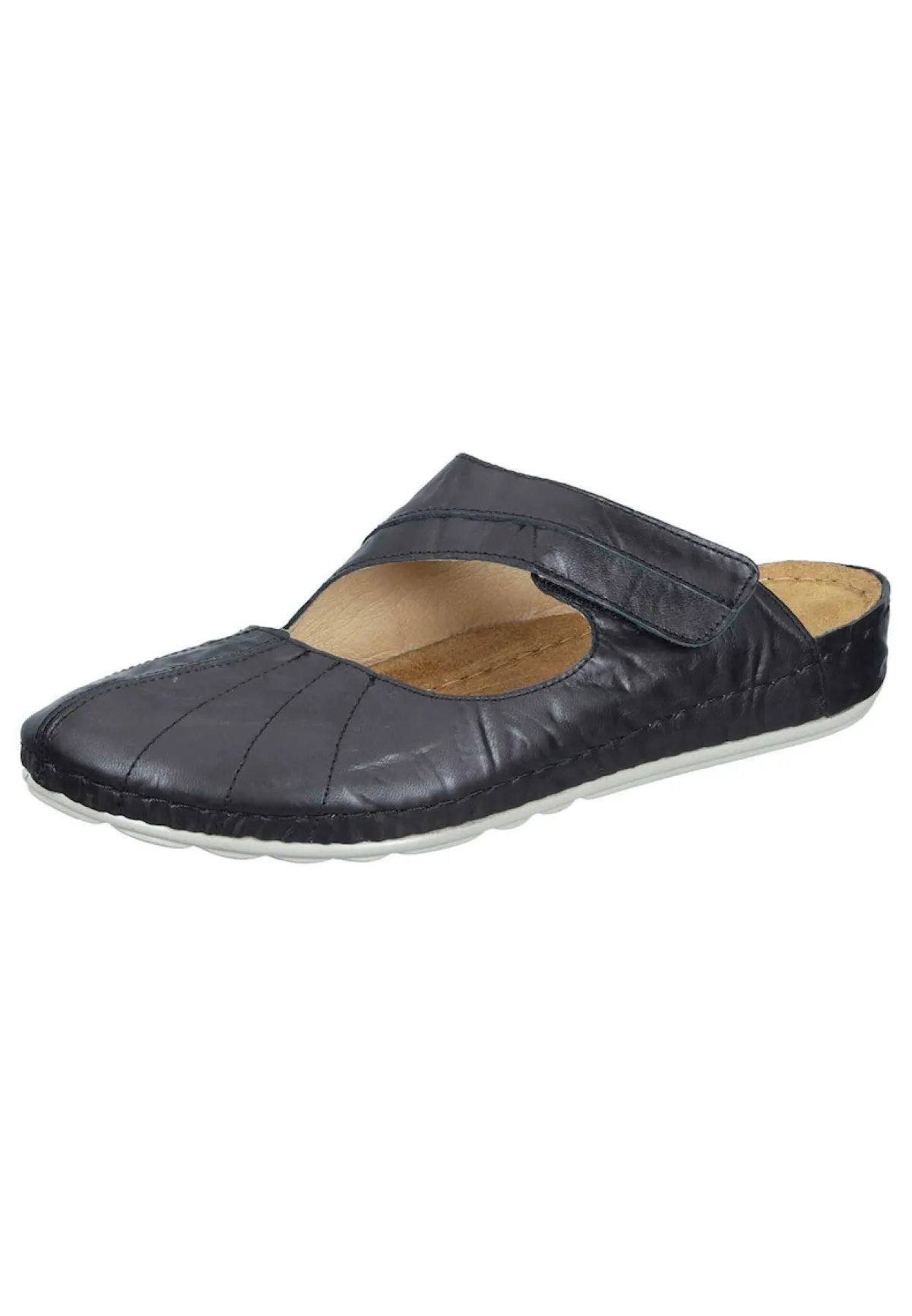 Bei diesem Produkt handelt es sich um einen Schuh aus der Kategorie Komfort-Pantoletten für Damen. Als Obermaterial wurde Leder verwendet und im inneren Bereich des Schuhs wurde Lederfutter und Lederdecksohle verarbeitet. Die Schuhweite dieses Artikels ist Weite G und somit normal. Als Verschlussart wurde Schlupfschuh gewählt und die PU-Sohle rundet das Produkt ab. Der Artikel fällt normal aus, bitte die gewohnte Größe bestellen. – Schuhweite: Weite G –