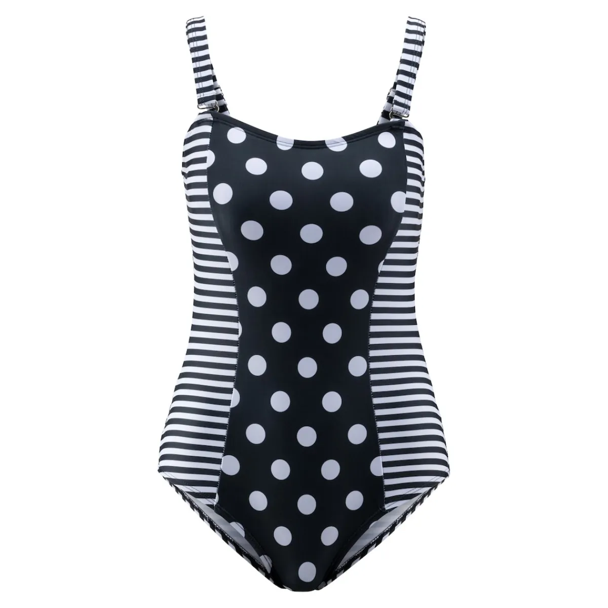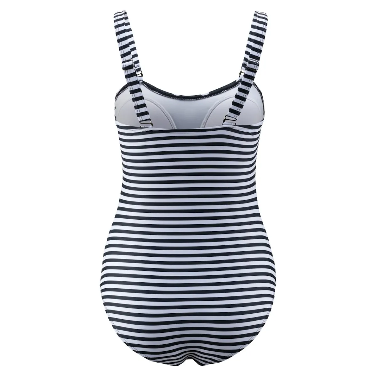 Mit den geschickt platzierten Streifen und dem figurschmeichelnden Schnitt dieses Badeanzugs zaubern Sie im Nu eine optisch schlanke Silhouette. Die individuell verstell- und abnehmbaren Träger bieten Ihnen die Flexibilität, den Badeanzug ganz nach Ihren Wünschen anzupassen.