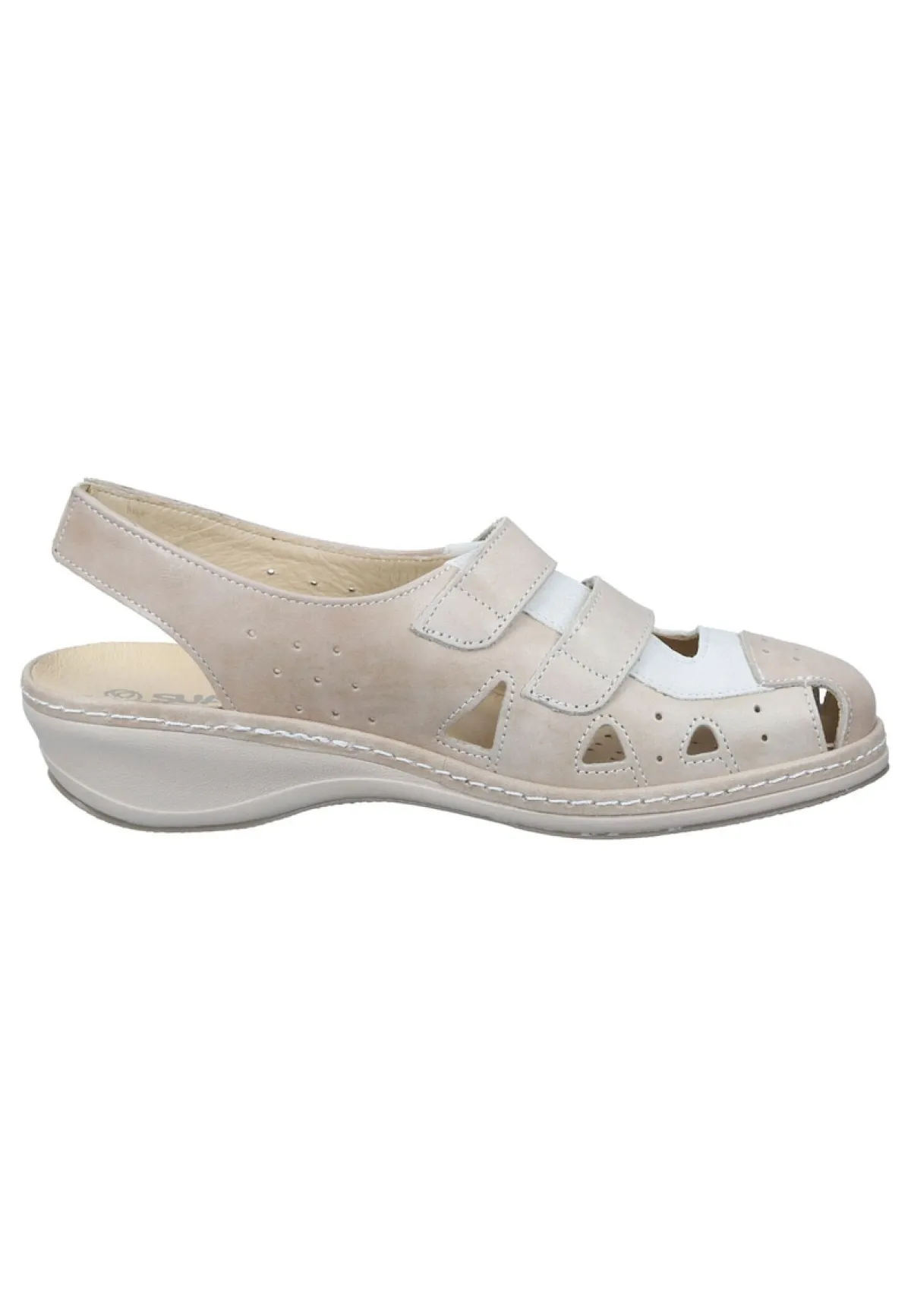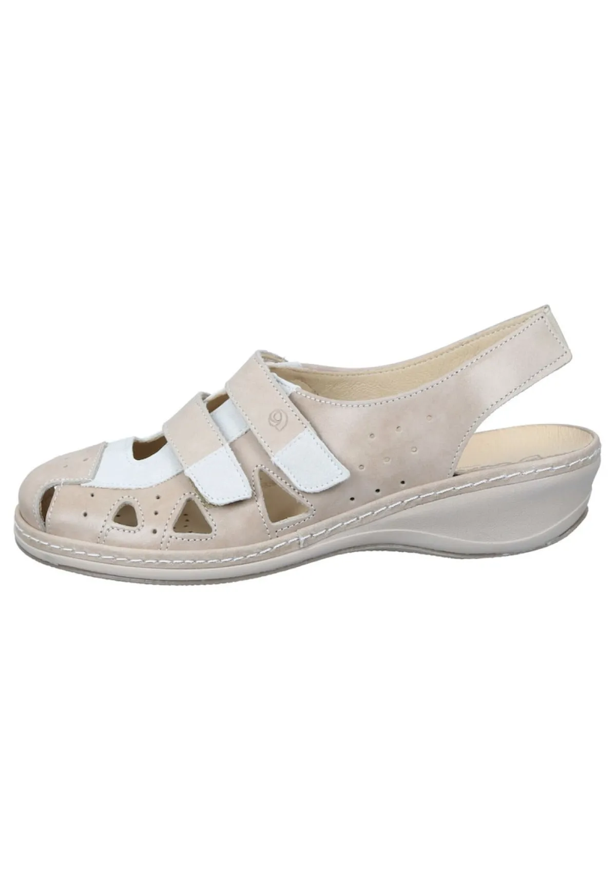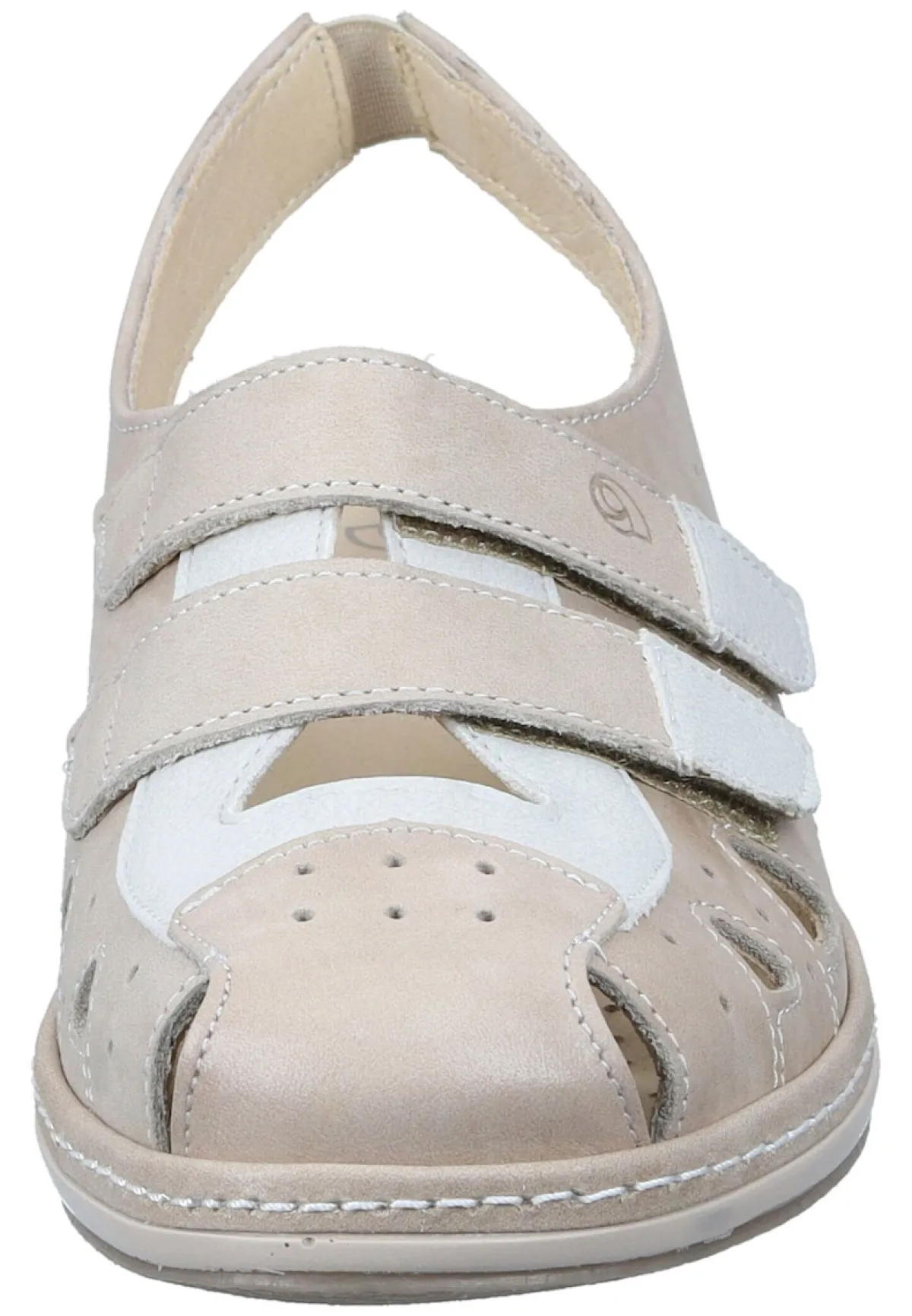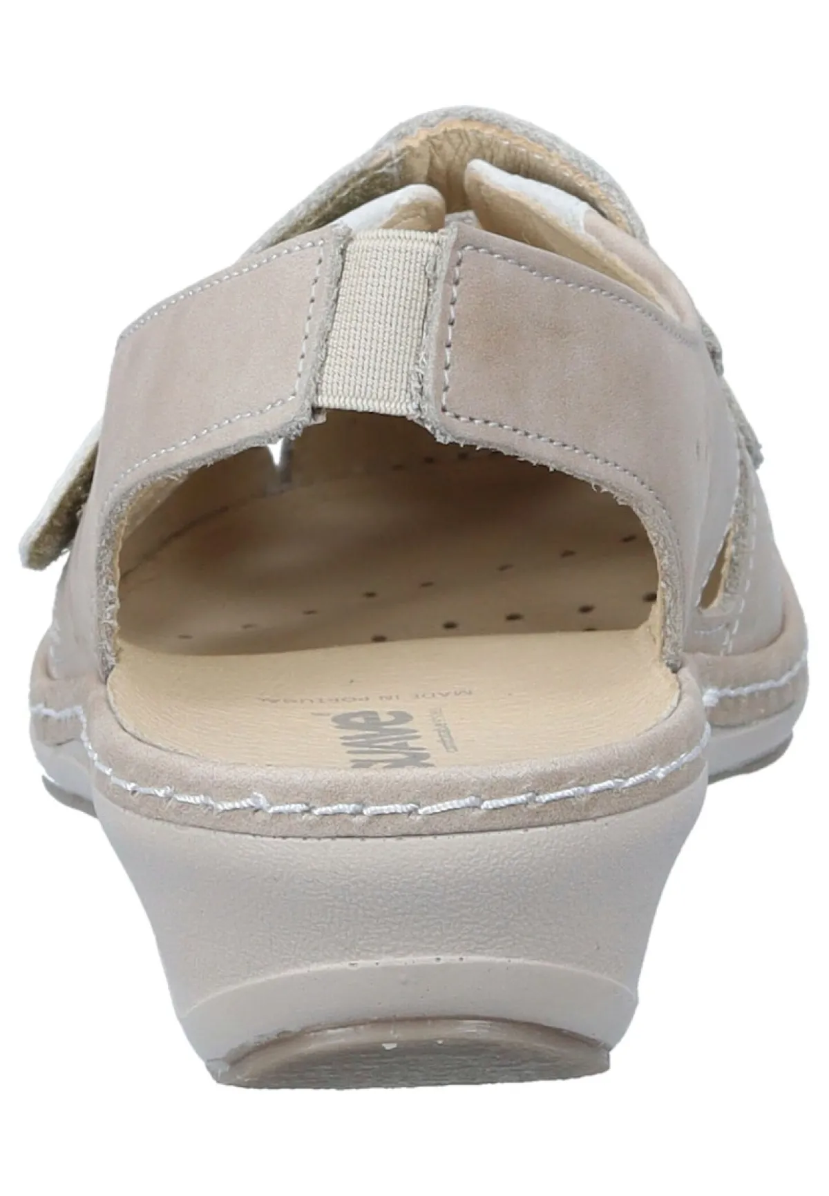Bei diesem Produkt handelt es sich um einen Schuh aus der Kategorie Komfort-Sandalen für Damen. Als Obermaterial wurde Leder verwendet und im inneren Bereich des Schuhs wurde Lederfutter und herausnehmbare gepolsterte Lederdecksohle verarbeitet. Die Schuhweite dieses Artikels ist bequeme Weite und somit etwas breiter. Als Verschlussart wurde Schlupfschuh gewählt und die TR-Sohle rundet das Produkt ab. Der Artikel fällt normal aus, bitte die gewohnte Größe bestellen. – Schuhweite: bequeme Weite –