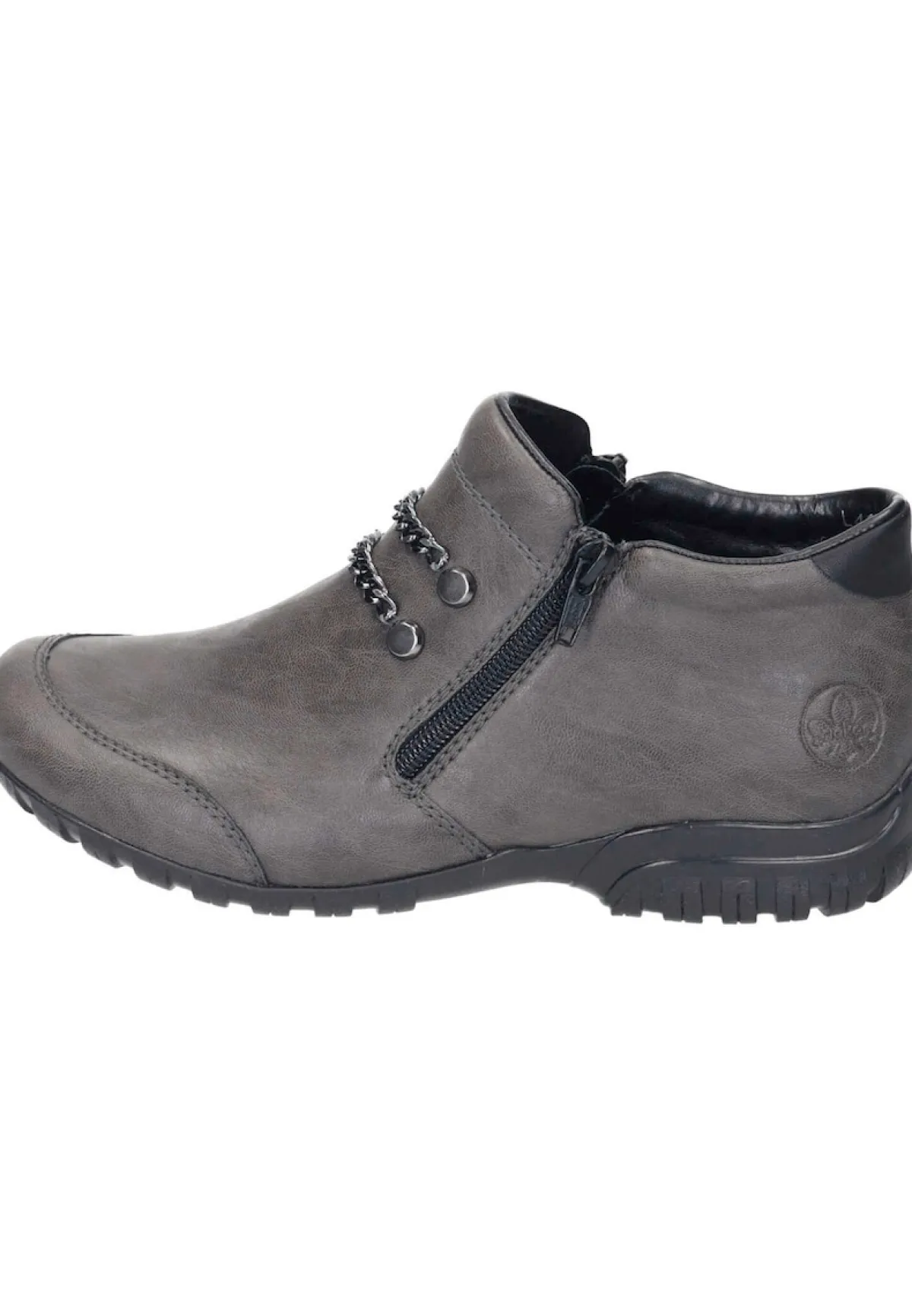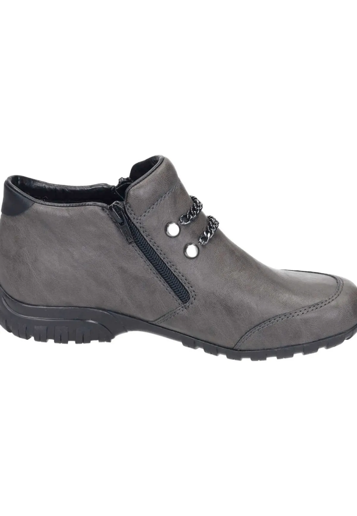 Bei diesem Produkt handelt es sich um einen Schuh aus der Kategorie Klassische Stiefeletten für Damen. Als Obermaterial wurde Synthetik verwendet und im inneren Bereich des Schuhs wurde Warmfutter und herausnehmbare Filzdecksohle verarbeitet. Die Schuhweite dieses Artikels ist Weite H, extra weit und somit für breite Füße. Als Verschlussart wurde Reißverschluss gewählt und die TR-Sohle rundet das Produkt ab. Der Artikel fällt normal aus, bitte die gewohnte Größe bestellen. – Schuhweite: Weite H, extra weit –
