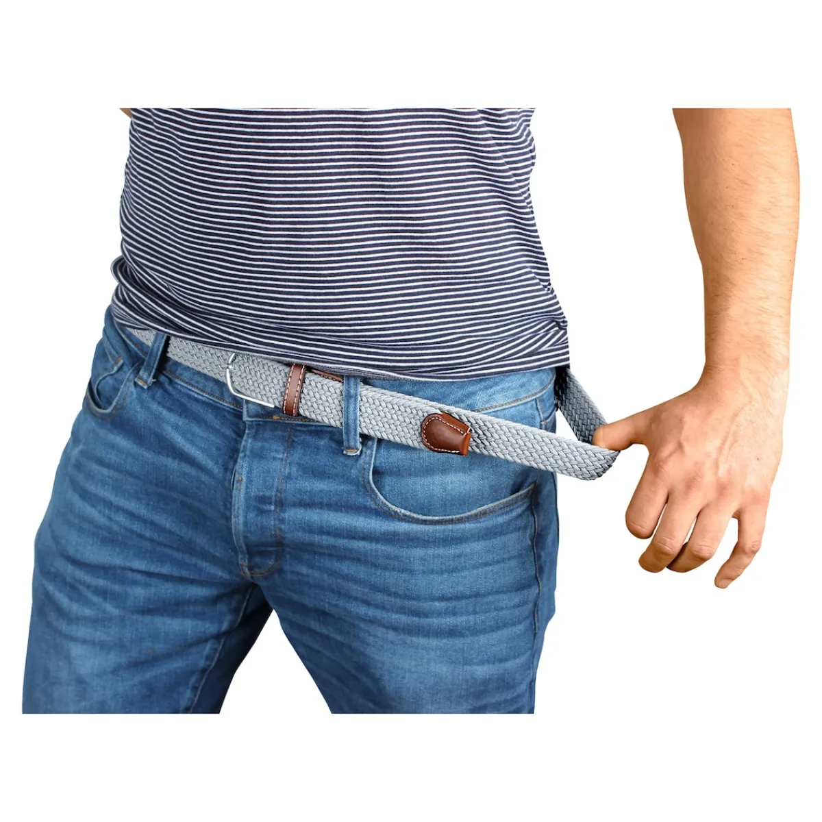 Schick und bequem. Fein geflochtenes, flexibles Gewebe, in das der Dorn an jeder beliebigen Stelle eingehakt werden kann. Mit Kunstleder und Metall-Schließe.