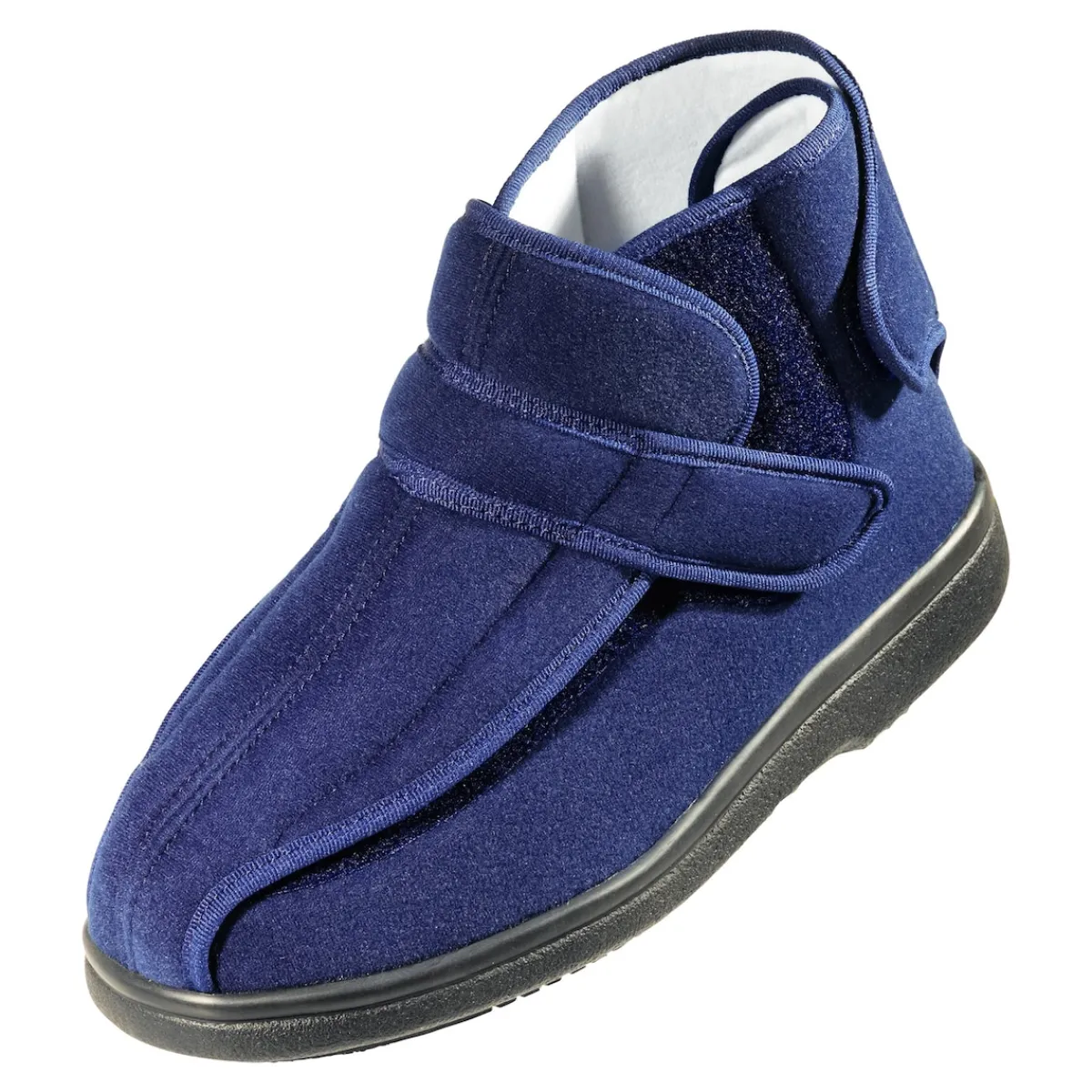 Vorne großzügiger Cabrio-Verschluss, an der Ferse breiter Klettverschluss. Das erleichtert den Einstieg und die individuelle Weitenregulierung. Der Spezialschuh ist ideal bei geschwollenen Füßen und Hammerzehen, nach Operationen und bei Gipsverbänden oder Bandagen. Cosyfit-Futter mit Weichschaumeinlage.