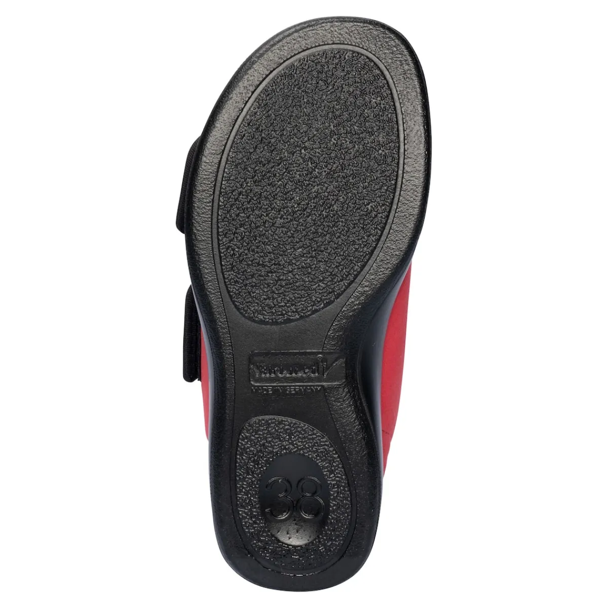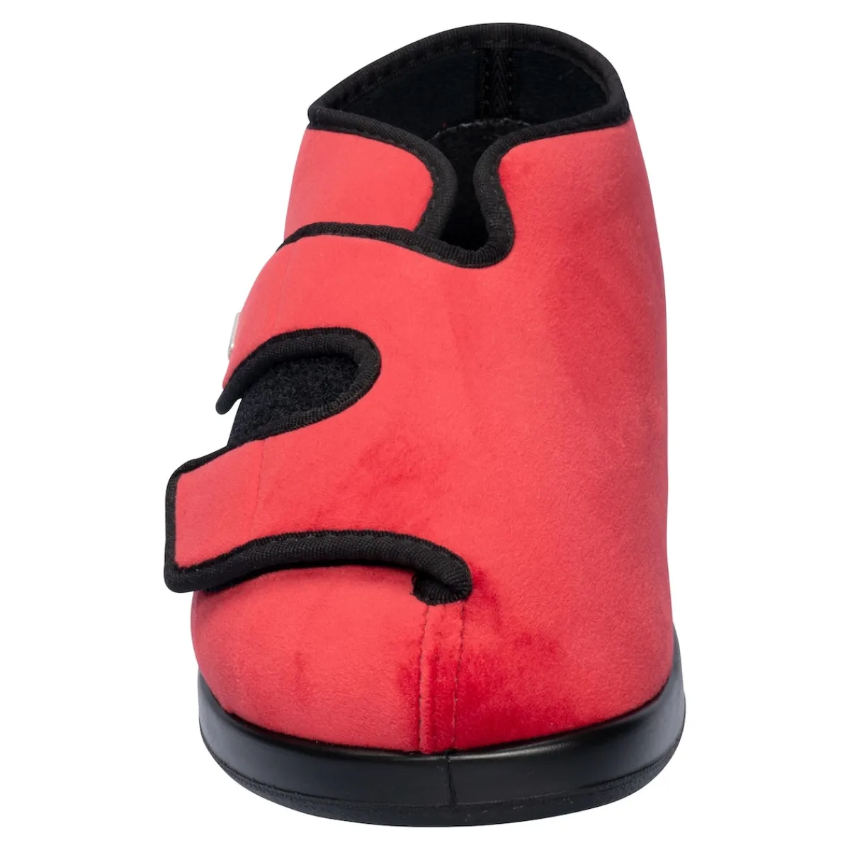 Angenehmer Sitz und komfortables An- und Ausziehen, dank breitem Klettverschluss und bequemer Weite L. Weiches Frotteefutter – damit bleiben die Füße immer schön warm. Mit 3 mm Weichschaumeinlage und rutschhemmender PU-Laufsohle.