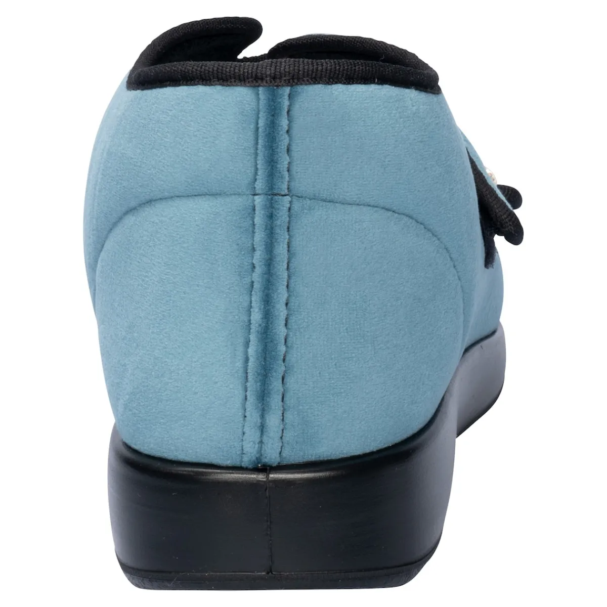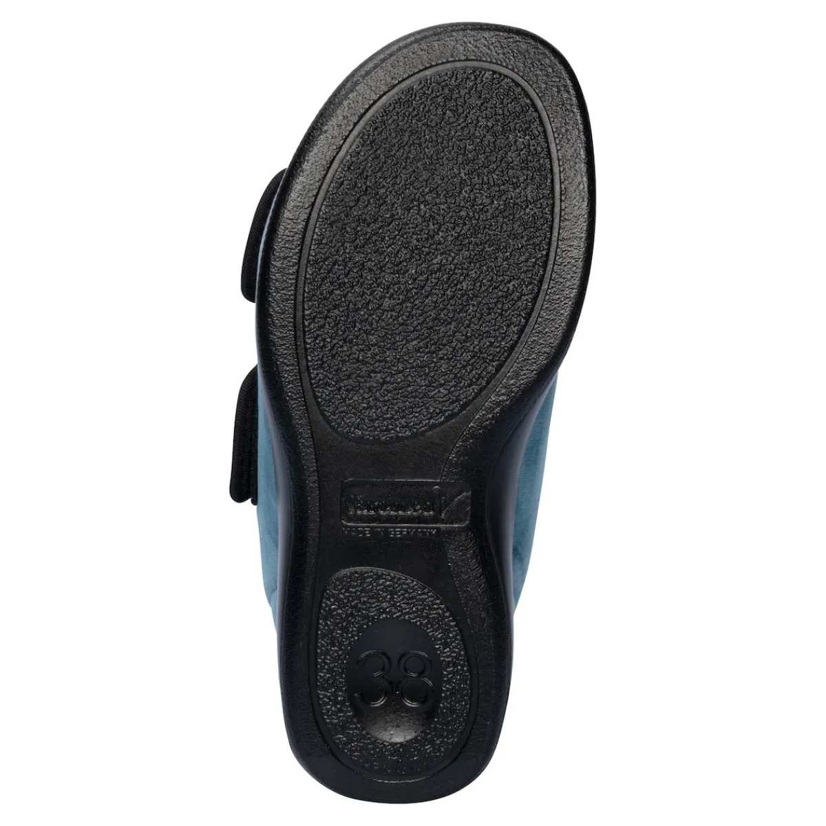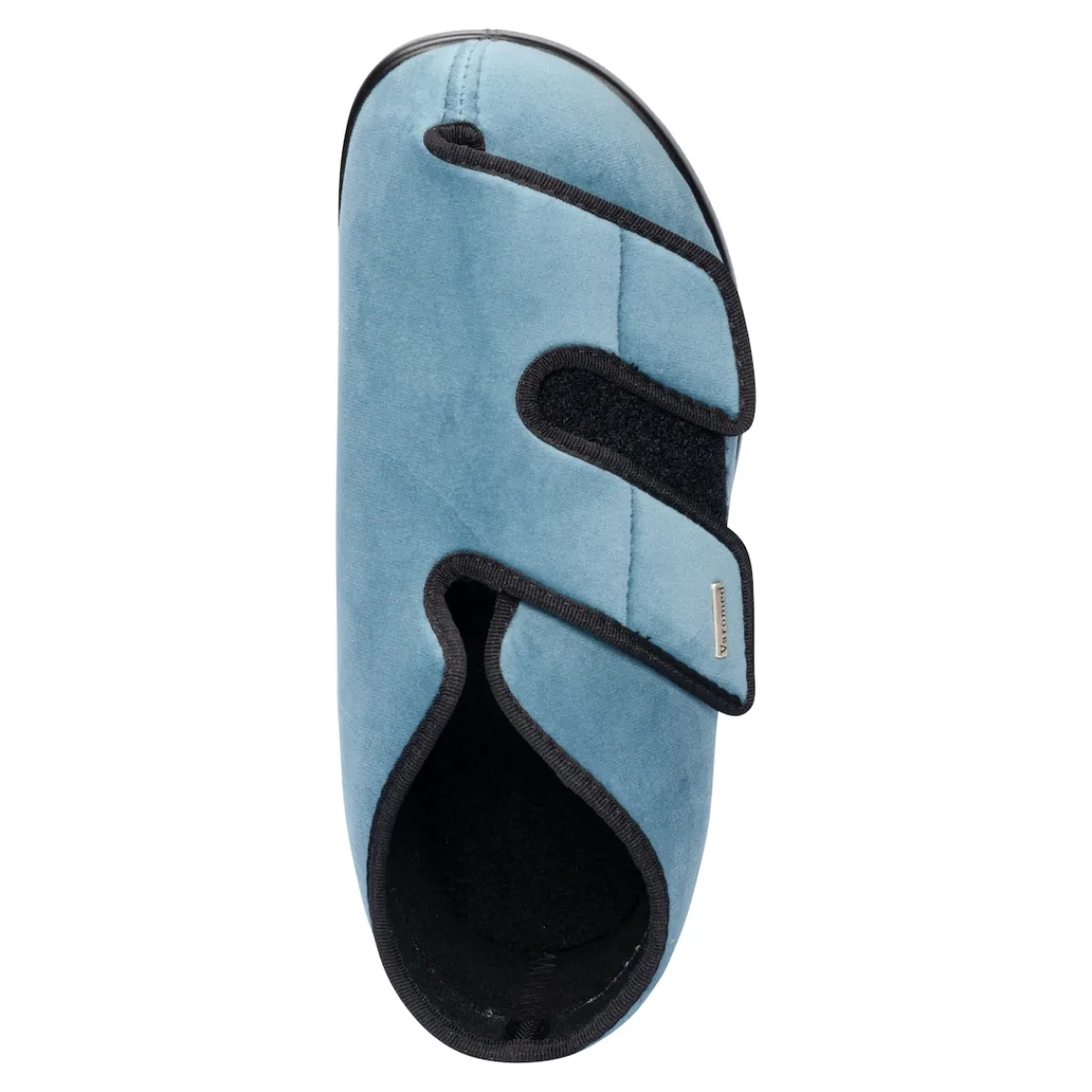 Angenehmer Sitz und komfortables An- und Ausziehen, dank breitem Klettverschluss und bequemer Weite L. Weiches Frotteefutter – damit bleiben die Füße immer schön warm. Mit 3 mm Weichschaumeinlage und rutschhemmender PU-Laufsohle.