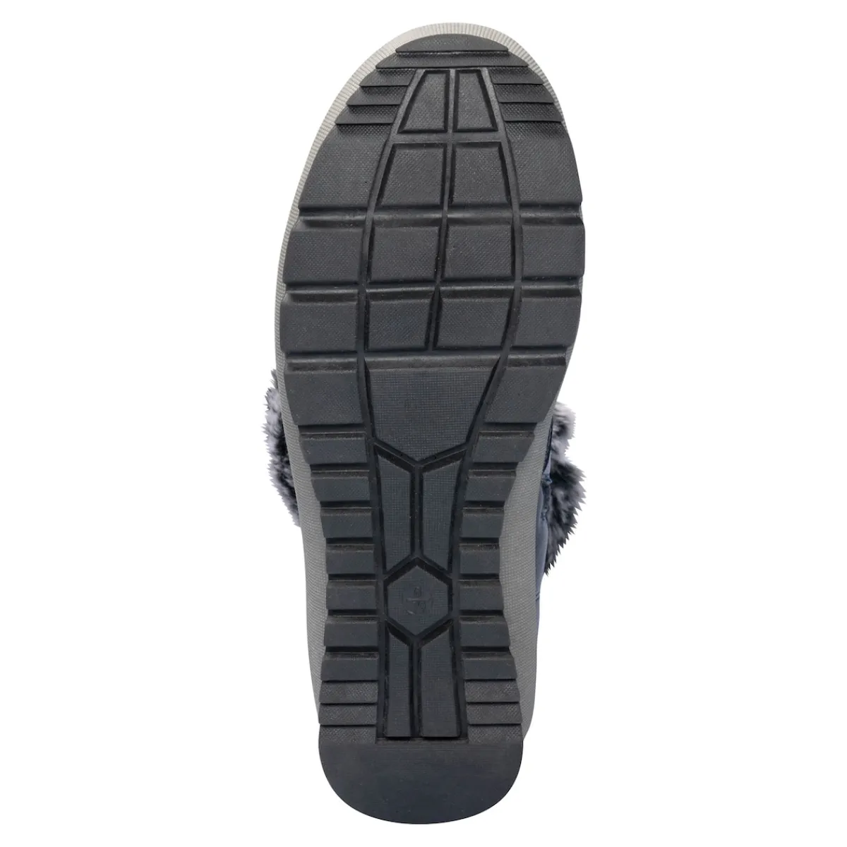 Der attraktive Winterstiefel in Leder-Optik mit Reißverschluss überzeugt an kalten Tagen mit warmem Futter, üppigem Kunstfellrand und weicher Decksohle. Der Reißverschluss auf der Innenseite ermöglicht einen mühelosen Ein- und Ausstieg. Die Schnürung am hinteren Schaft sorgt für den perfekten Sitz, auch bei stärkeren Waden. Mit zweifarbiger Gummi-Profil-Laufsohle.