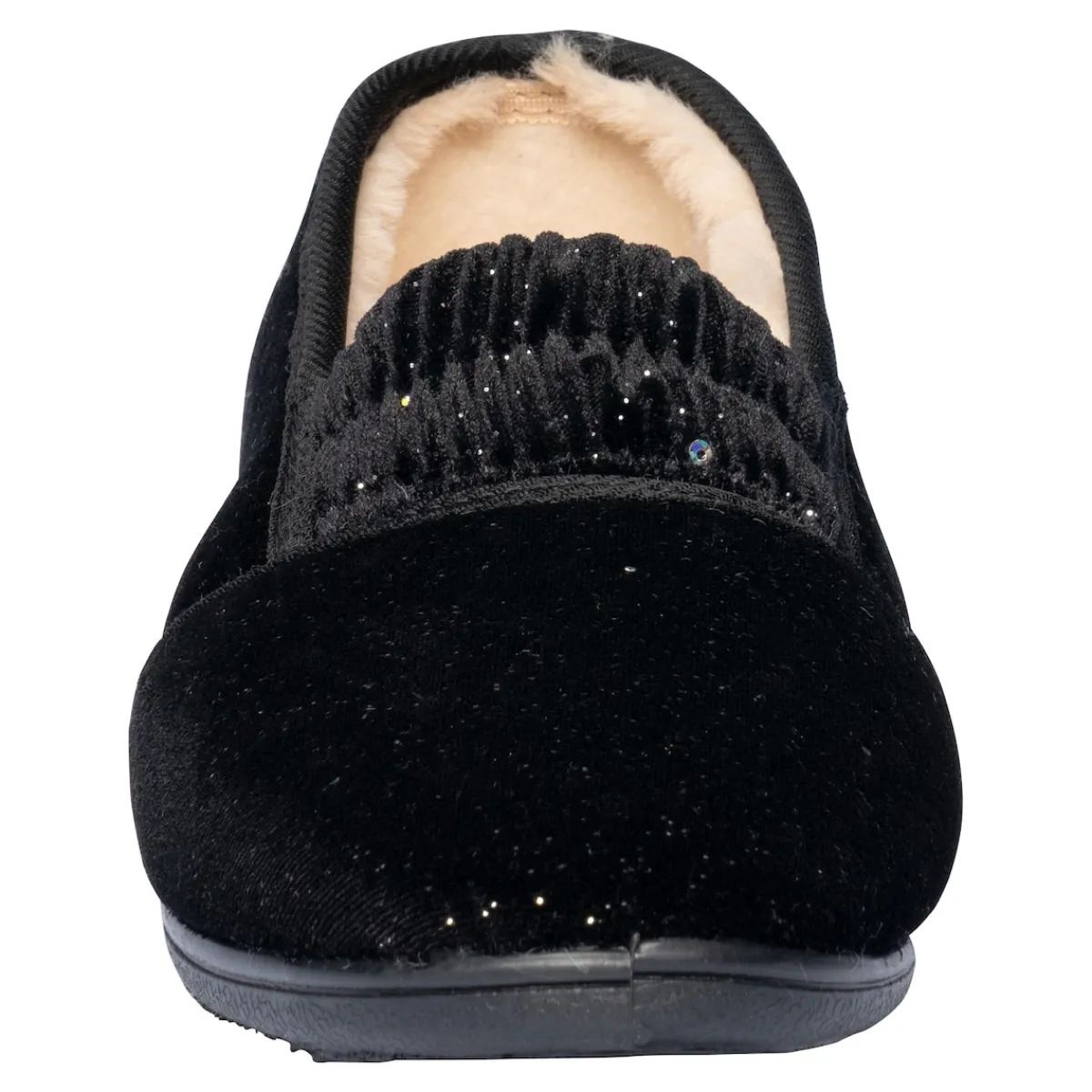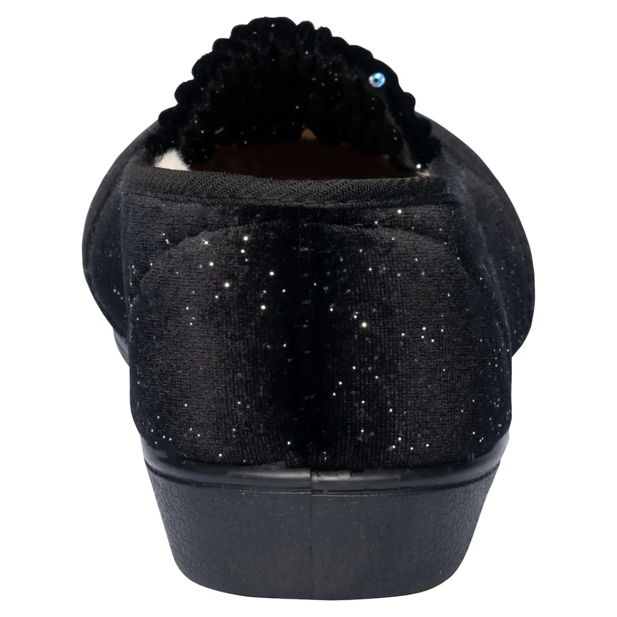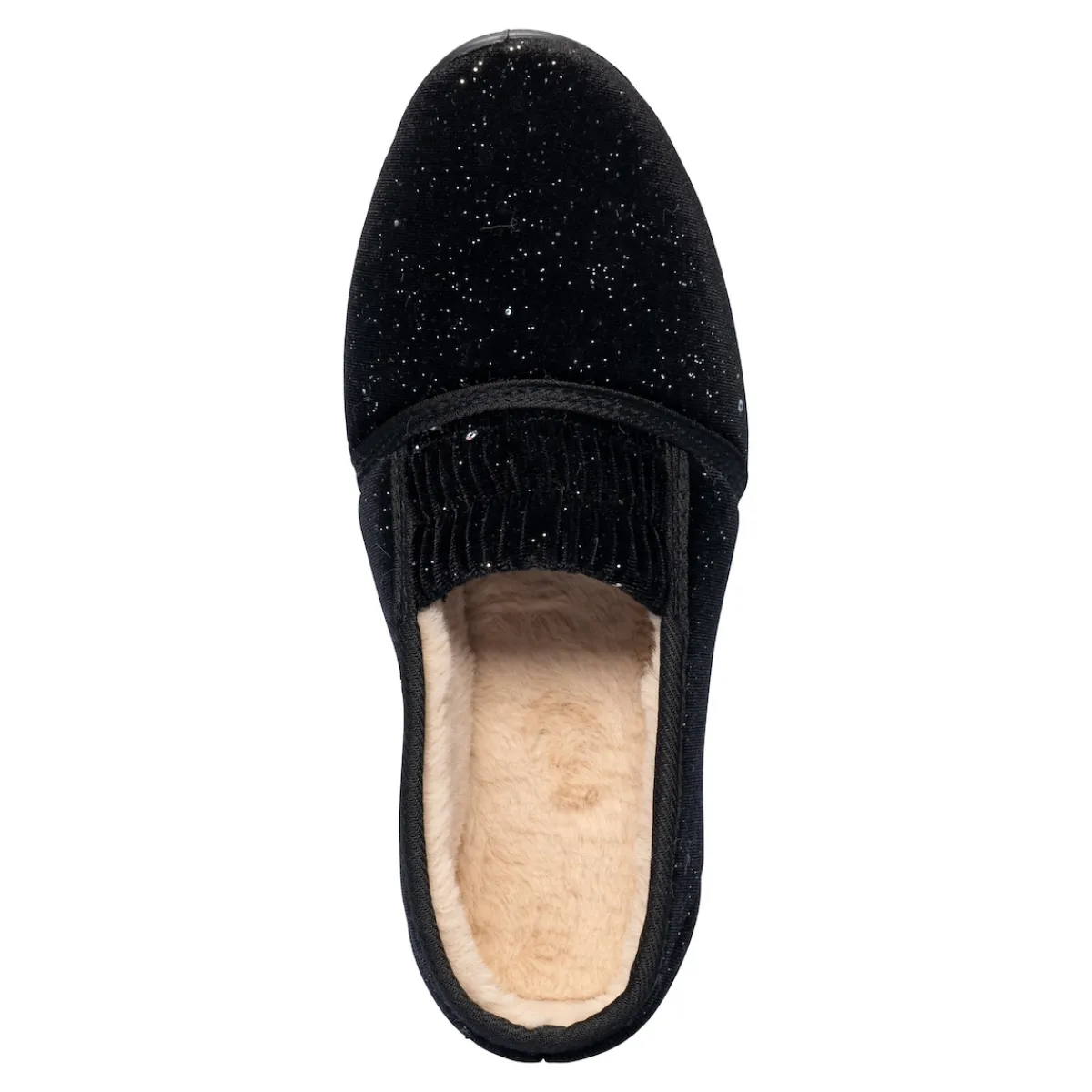 Freuen Sie sich auf einen Hausschuh, der Ihren Schritten einen funkenden Auftritt verleiht: Mit seinem warmen Futter und den dezenten Glitzerpailletten bietet er nicht nur einen Hauch von Glamour, sondern auch höchsten Tragekomfort. Für einen leichten Ein- und Ausstieg und optimalen Sitz sorgen die elastischen Einsätze über dem Rist. Mit weicher Decksohle und rutschhemmender Laufsohle.