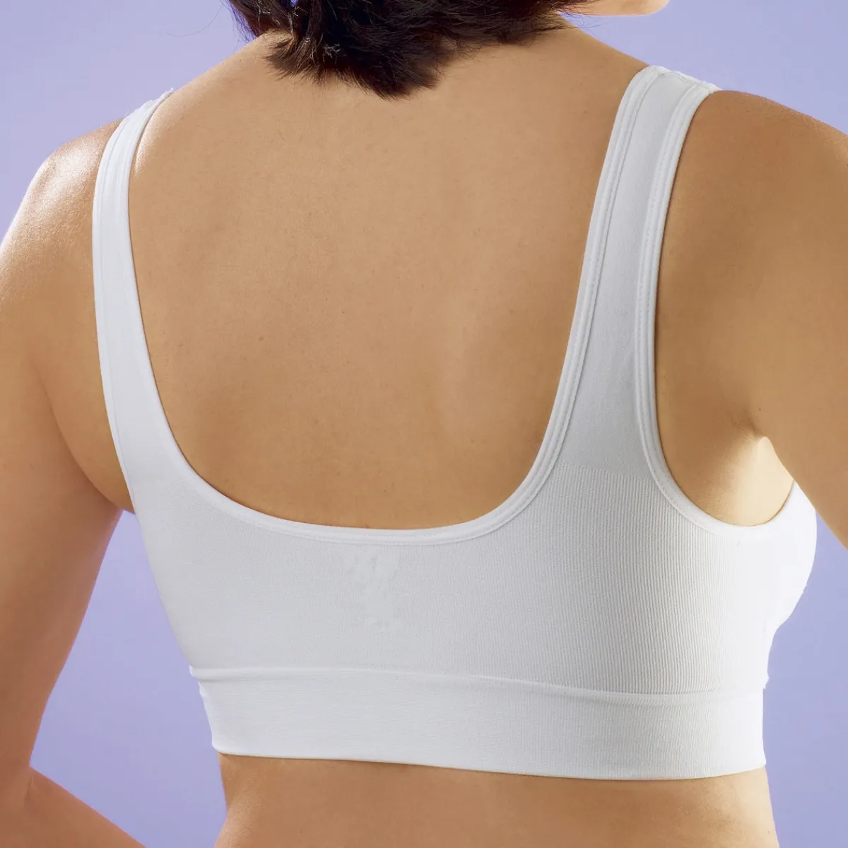 Der optimale Sitz des BHs gelingt durch die breiten Träger und die extra breite Rückenpartie. Beide sorgen dafür, dass sich das Gewicht der Brust auf dem Oberkörper verteilt. Dadurch geben sie dem gesamten Brustbereich stabilen Halt und unterstützen dabei die Brust.