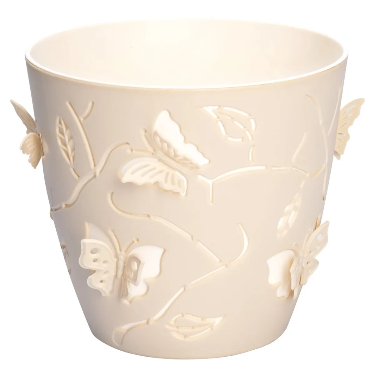 Jetzt ist genau die richtige Zeit für ein „beflügeltes“ Gartenvergnügen. Ob auf Terrasse oder Balkon platziert, die kunstvollen 3D-Schmetterlingsmotive setzen zauberhafte Akzente und bringen Leichtigkeit in Ihre Pflanzenwelt. Der farblich abgesetzte Innentopf lässt die Schmetterlinge noch lebendiger wirken.