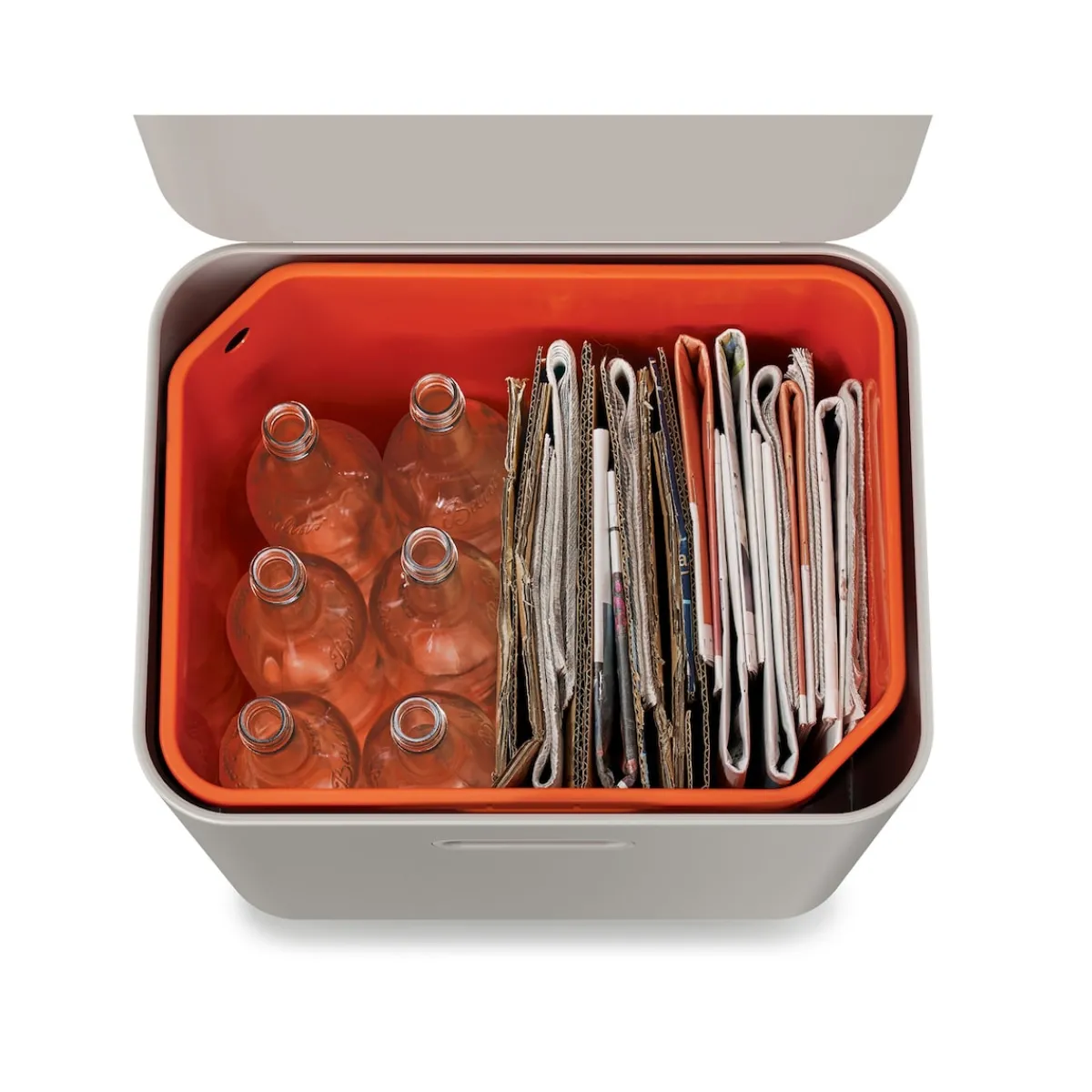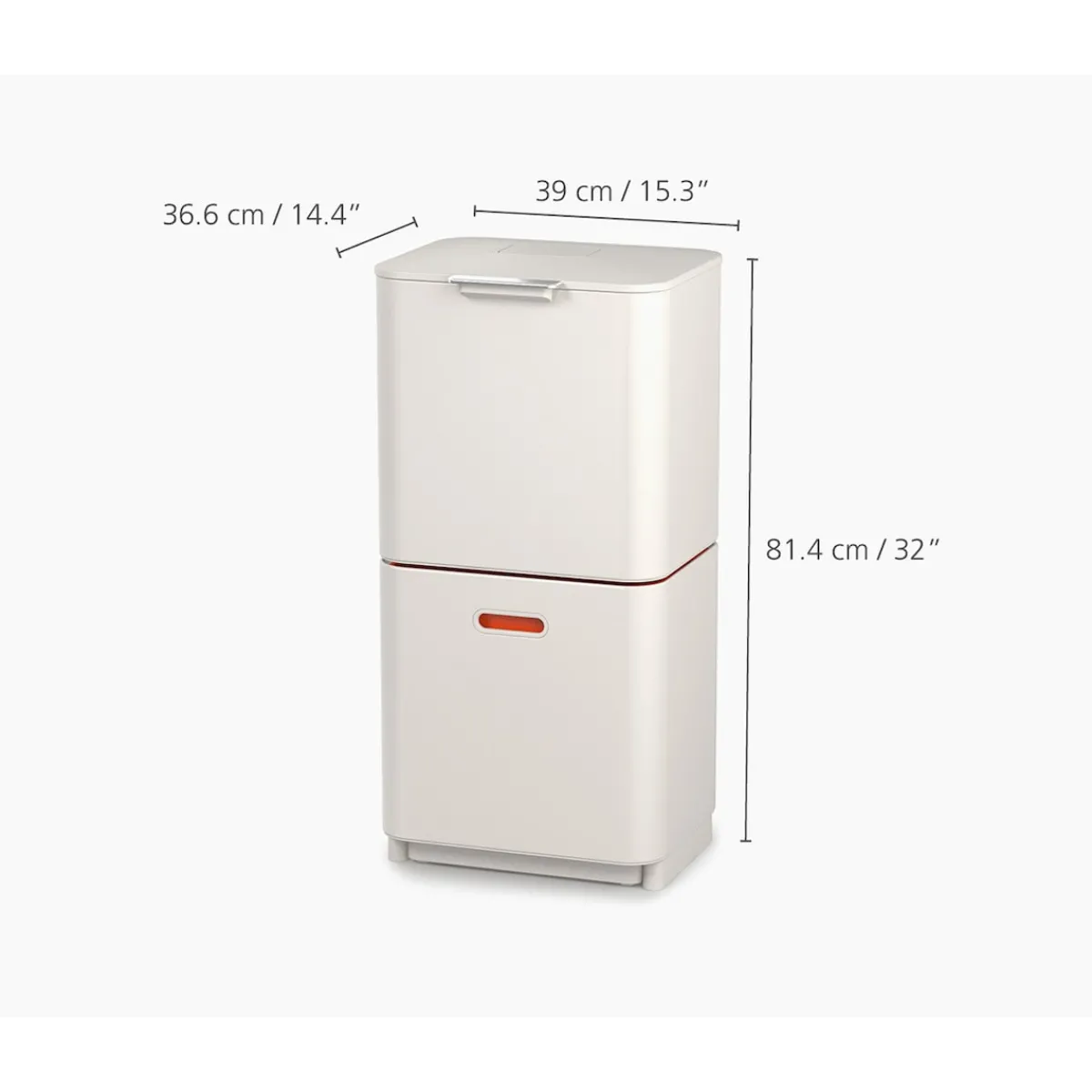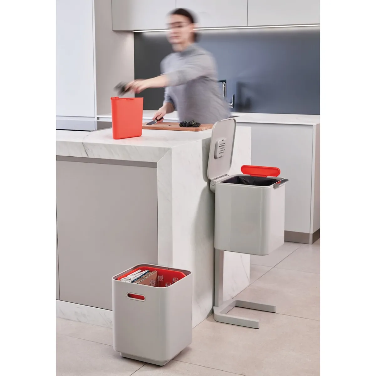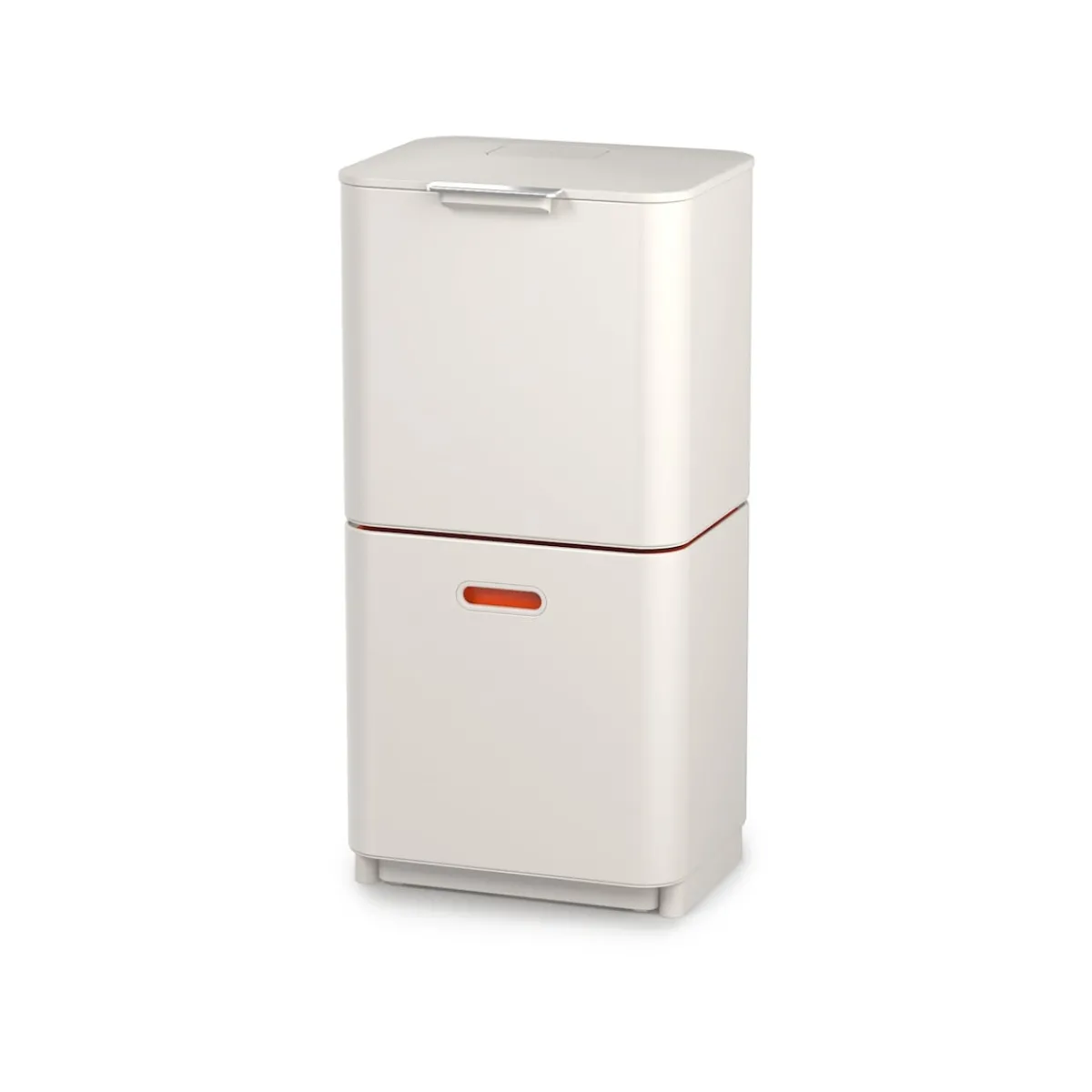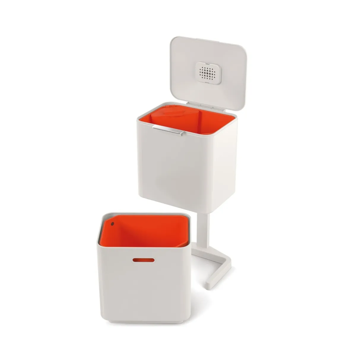 Der Totem Max, ein preisgekrönter Abfalltrennungs- und Recyclingbehälter, vereint drei Behälter in einem eleganten, vertikalen Design. Mit zwei großzügigen 30-Liter-Fächern für Abfalltrennung und Recycling sowie einem herausnehmbaren 3-Liter-Bioabfalleimer, ist der Totem Max die optimale Lösung für alle, die Abfall und Recycling an einem Ort organisieren möchten. Dank seiner vertikalen Anordnung spart er kostbaren Raum in Ihrer Küche. Das Befüllen und Entleeren wird mühelos, unterstützt durch herausnehmbare Eimer mit Haltelöchern für Müllbeutel und Haken für Tragetaschen.