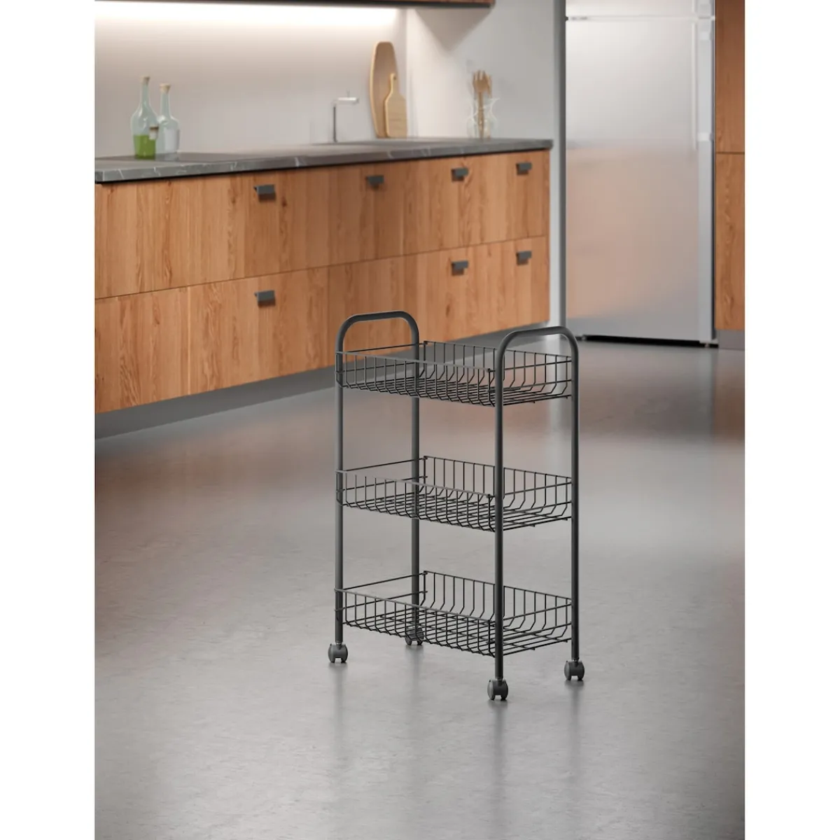 Ob als Servierwagen oder zusätzlicher Stauraum – der Allzweckwagen „Lugano“ Lava macht in jeder Hinsicht eine gute Figur. Mit seinen auf drei Etagen verteilten Körben bietet er jede Menge Platz, um Geschirr, Flaschen, Vorräte oder allerlei Kleinigkeiten schnell und einfach zu transportieren. Die vier Lenkrollen machen das Manövrieren zum Kinderspiel. Die exklusive Metaltex-TouchTherm(R)-Beschichtung in mattschwarz sieht nicht nur toll aus, sie schützt das Material auch vor Rost und Kratzern. Von seiner Qualität überzeugt, bietet der Hersteller des in Italien gefertigten Allzweckwagens eine Garantie von 5 Jahren.