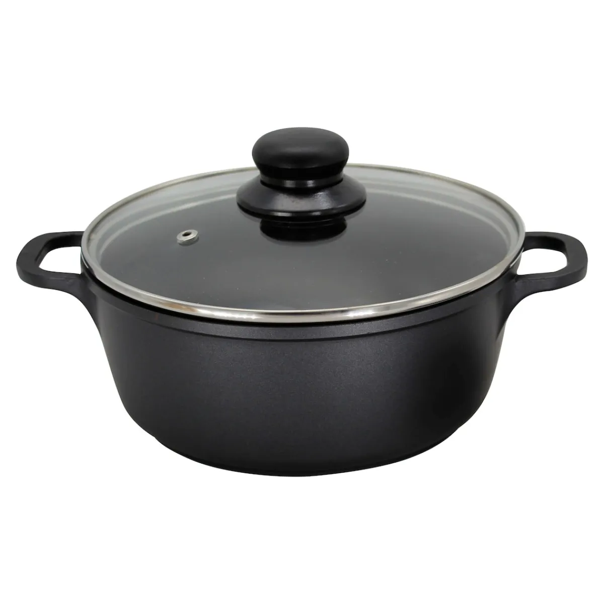 Aluguss Topf mit Glasdeckel und Thermogrips, Inhalt 0,9 l, 2,0 l oder 3,4 l. Mit langlebiger Antihaft-Versiegelung, schwere Qualitätsführung, zum schonenden und fettarmen braten, sehr gute Wärmespeicherung, leicht und mühelos zu Reinigen, geeigent für alle Herdarten außer Induktions-Kochfelder