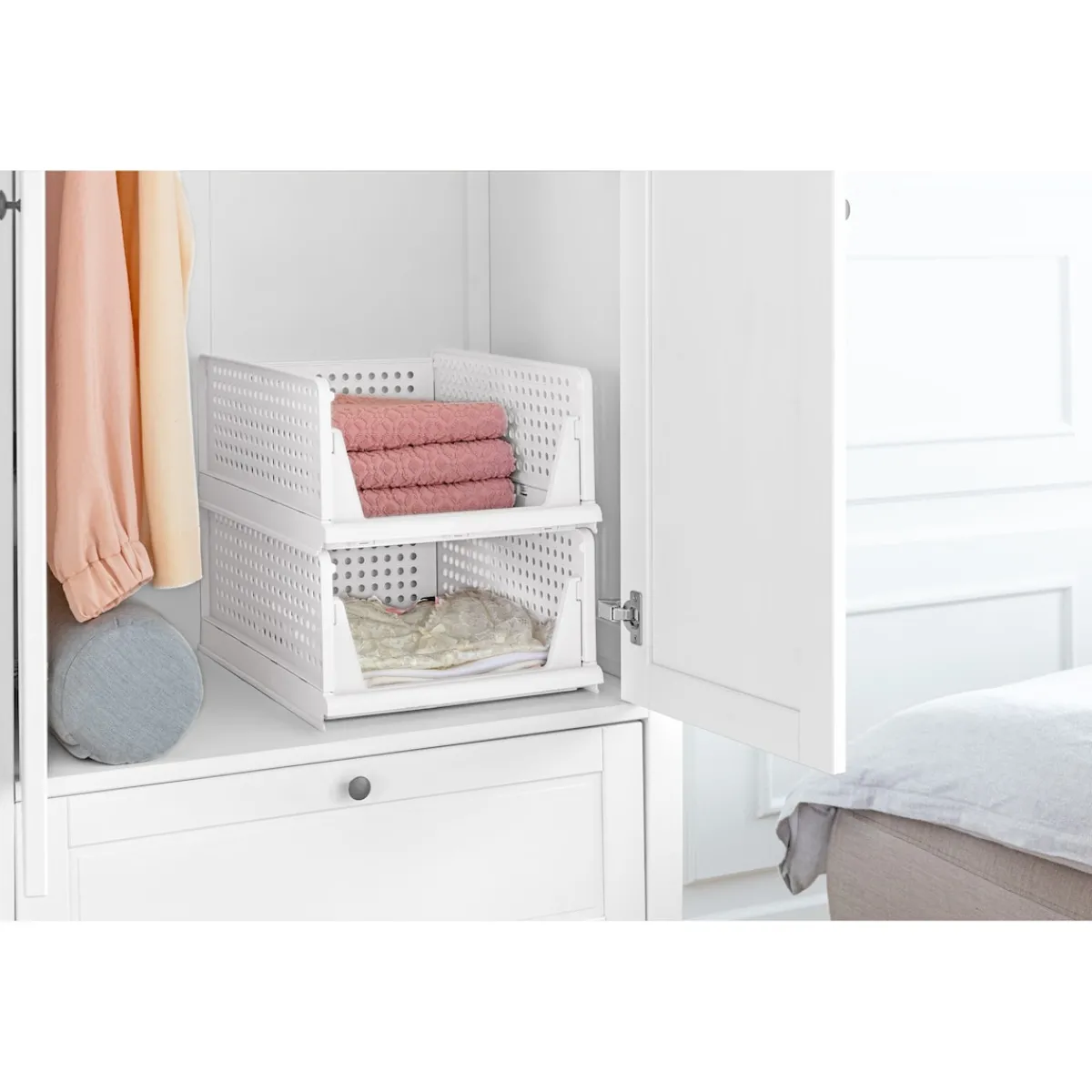 Entdecken Sie die perfekte Lösung für Ihr Aufbewahrungsproblem! Tipp: Stapeln Sie mehrere Boxen und nutzen Sie den vertikalen Raum optimal – so bleibt alles schön ordentlich und gut erreichbar! Die offene Vorderseite ermöglicht Ihnen den schnellen Zugriff auf alles, was Sie benötigen. Die clevere Aufbewahrungsbox lässt sich einfach zusammenklappen, wenn sie nicht in Gebrauch ist.