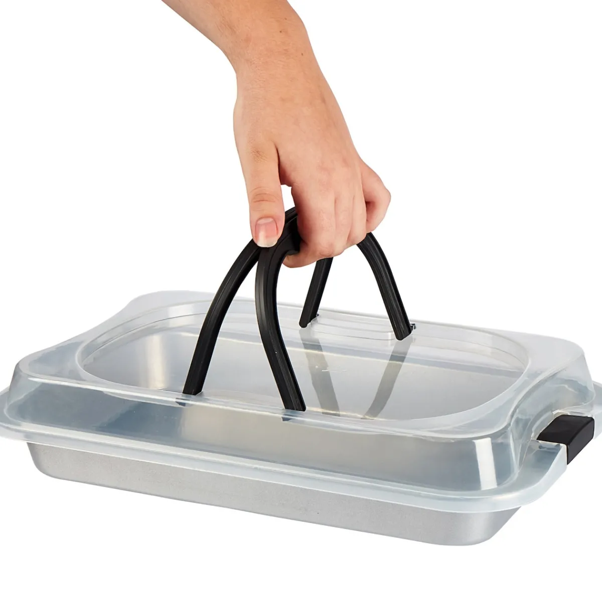 Mit dem Backblech inklusive Transporthaube können Sie sowohl Kuchen backen als auch herzhafte Speisen wie Lasagne zubereiten und sicher transportieren. Mit hochwertiger Antihaftbeschichtung, stabilen Tragegriffen und praktischen Seitenverschlüssen.