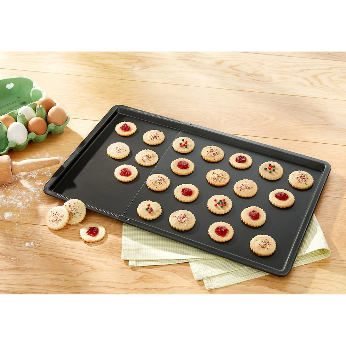 Ausziehbares Back- und Plätzchenblech mit Antihaftbeschichtung und Sicherheitsrasterung fü