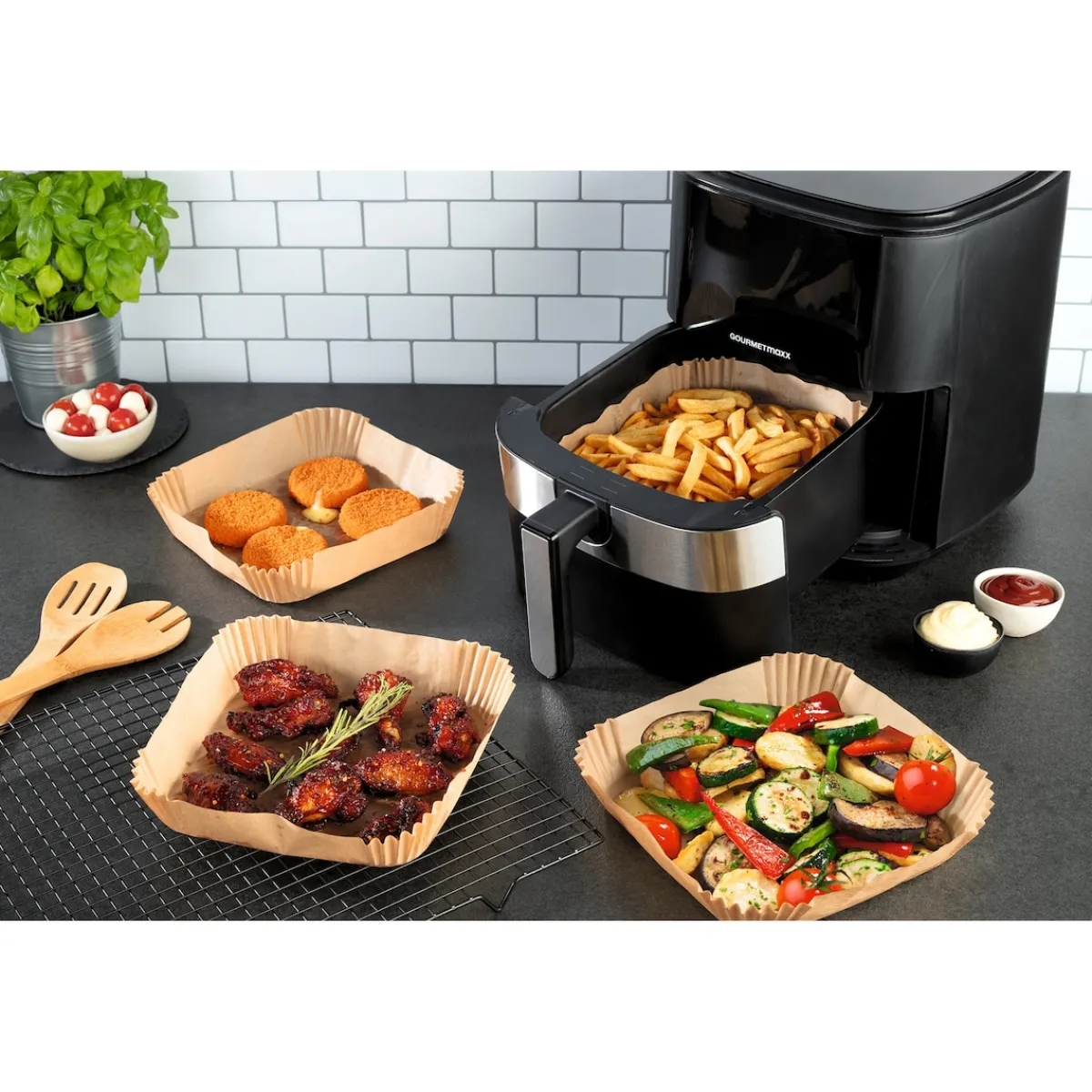 Sparen Sie sich Zeit und Nerven: Mit den stabilen Backpapier-Schalen minimieren Sie den Reinigungsaufwand für Ihre Heißluftfritteuse. Der hohe Rand schützt Ihr Gerät vor Fett und Speiseresten – während der Geschmack Ihrer Speisen erhalten bleibt.