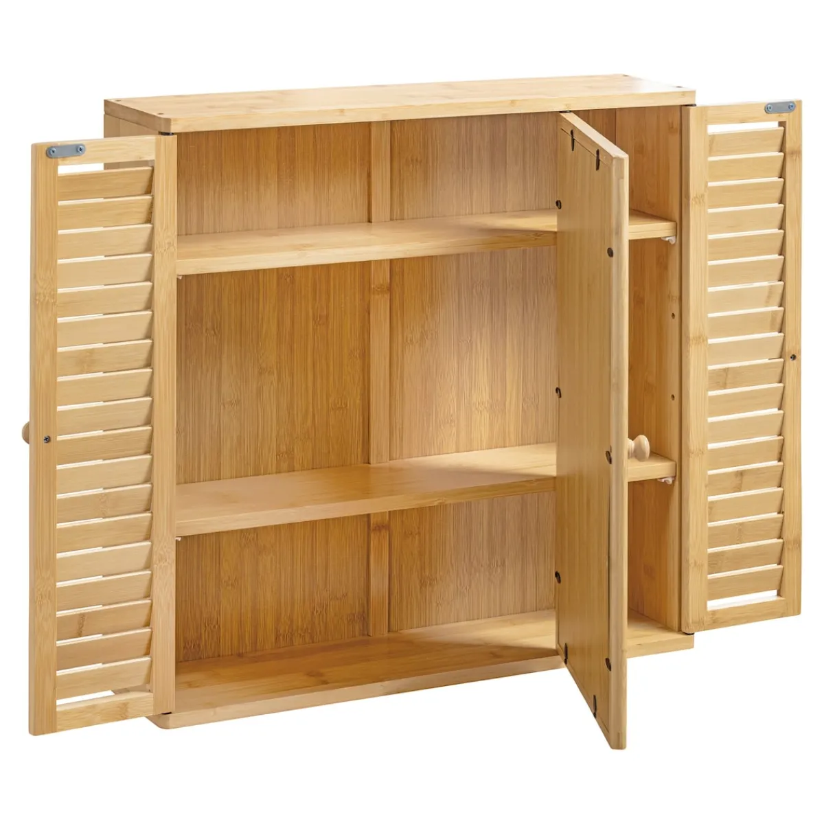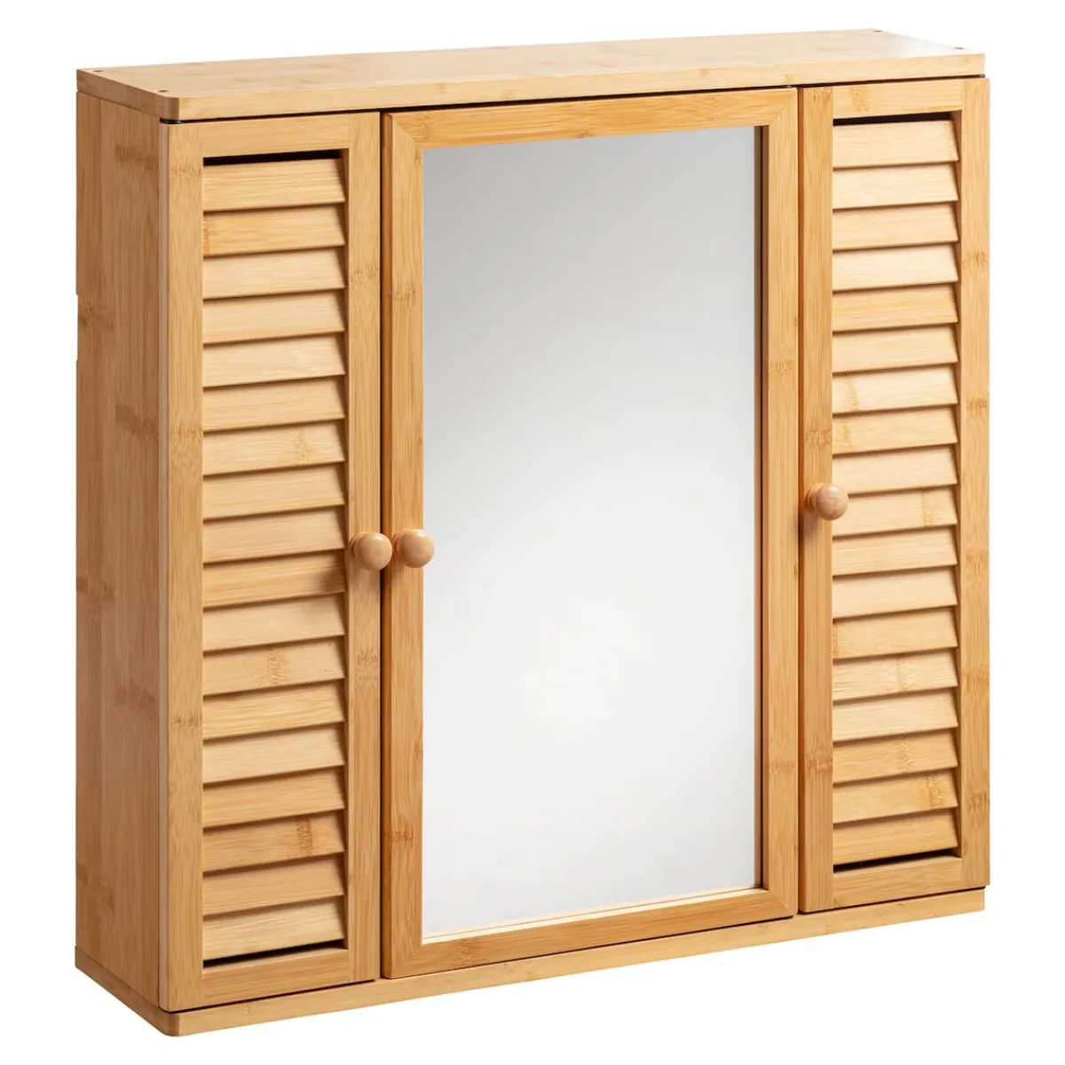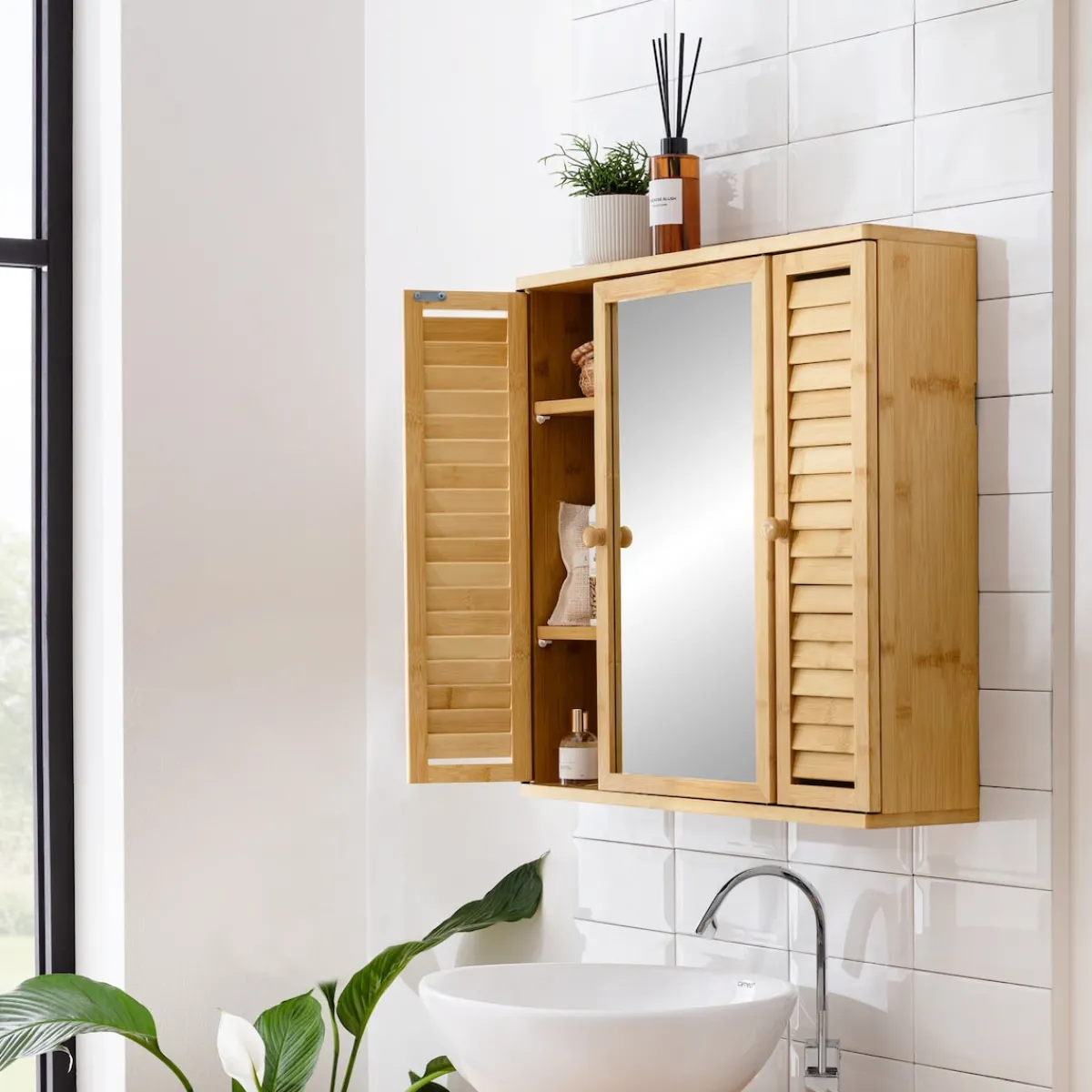 Setzen Sie auf Nachhaltigkeit und Stil: Mit diesem zeitlosen Hängeschrank bringen Sie den natürlichen Charme des Bambus in Ihr Zuhause. Ausgestattet mit stilvollen Lamellentüren und einer praktischen Spiegeltür, bietet er auf 3 Etagen viel Stauraum für Ihre Pflegeprodukte und Haushaltsutensilien.