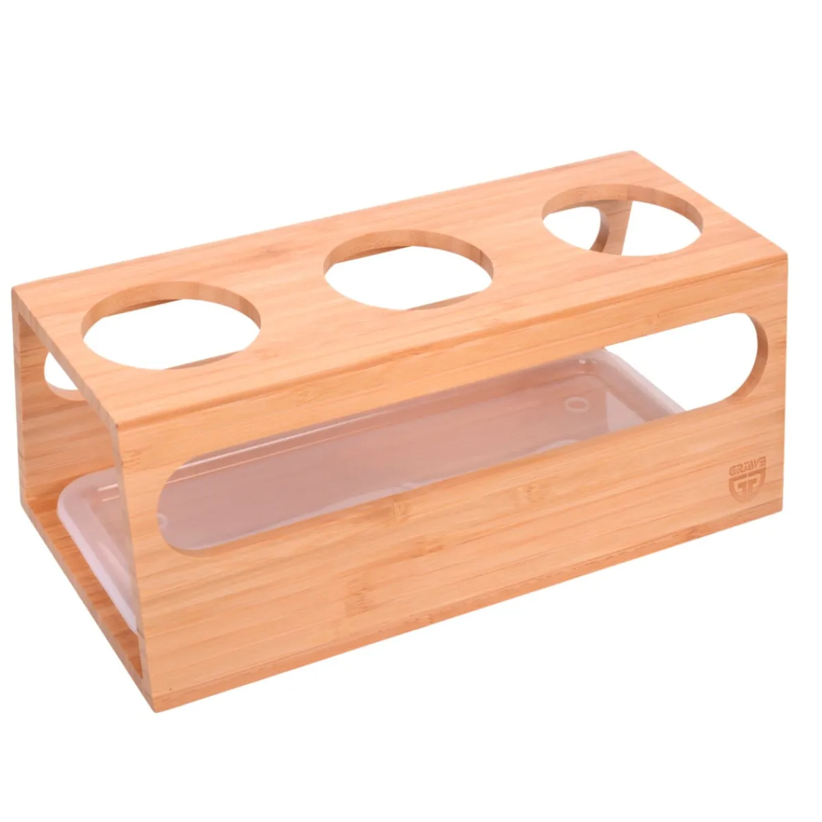 1 Bambus-Flaschenhalter für drei Flaschen + Abtropfschale