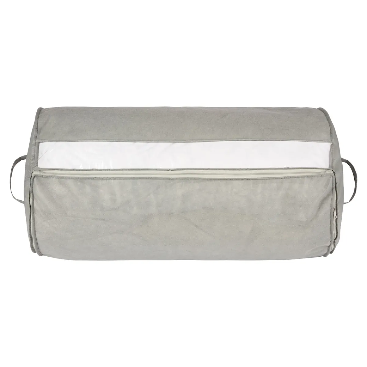 Mit dieser Aufbewahrungskünstlerin zaubern Sie im Nu Ordnung ins Schlafzimmer und schaffen Platz im Abstellraum: Saisonale Bettdecken oder andere Textilien bekommen einen sauberen Platz und bleiben in gutem Zustand. Dank praktischem Tragegriff meistert die Bettdecken-Tasche mühelos jeden Umzug oder Transport zur Reinigung.