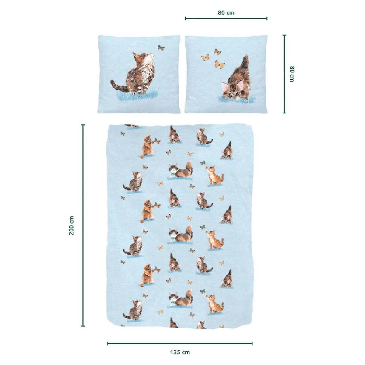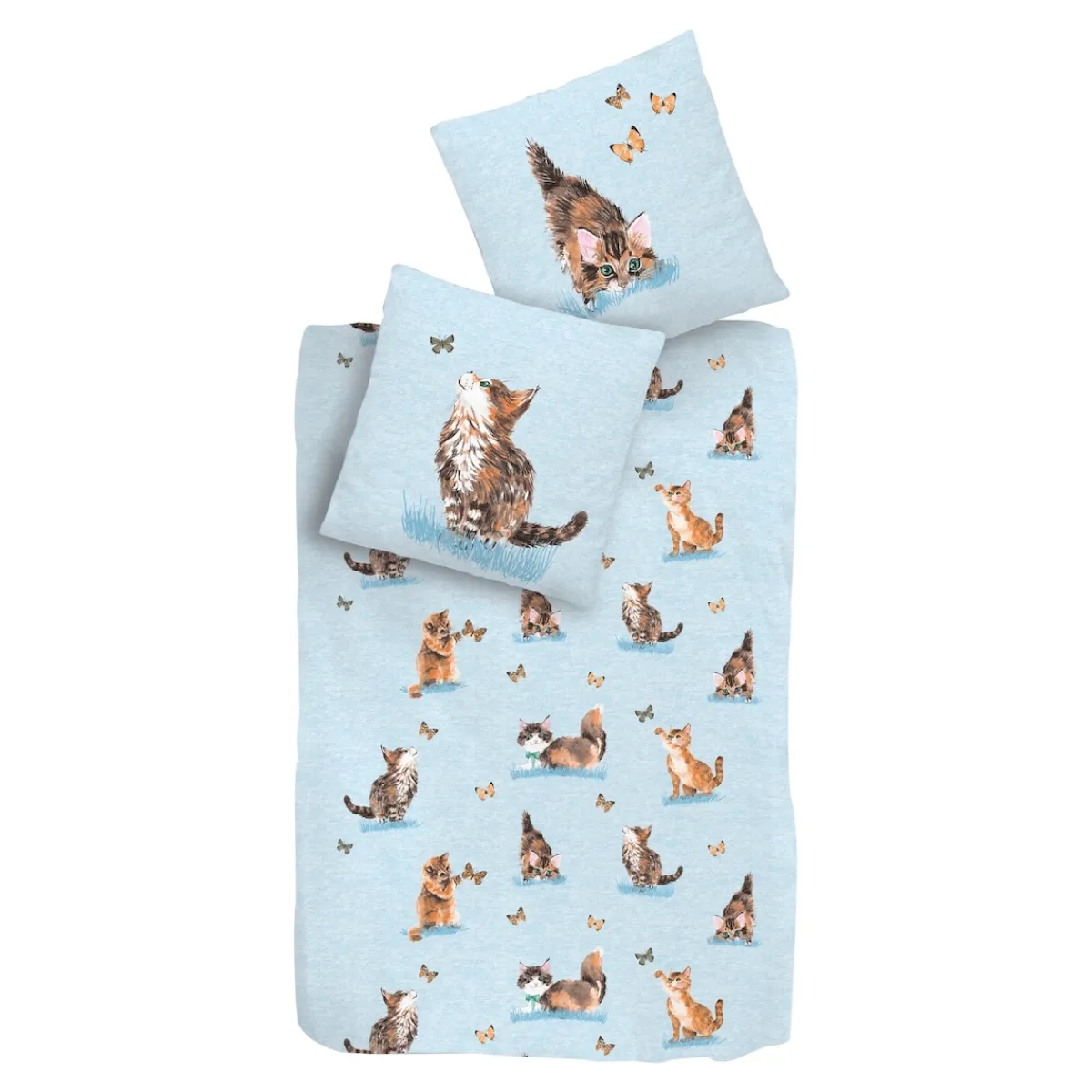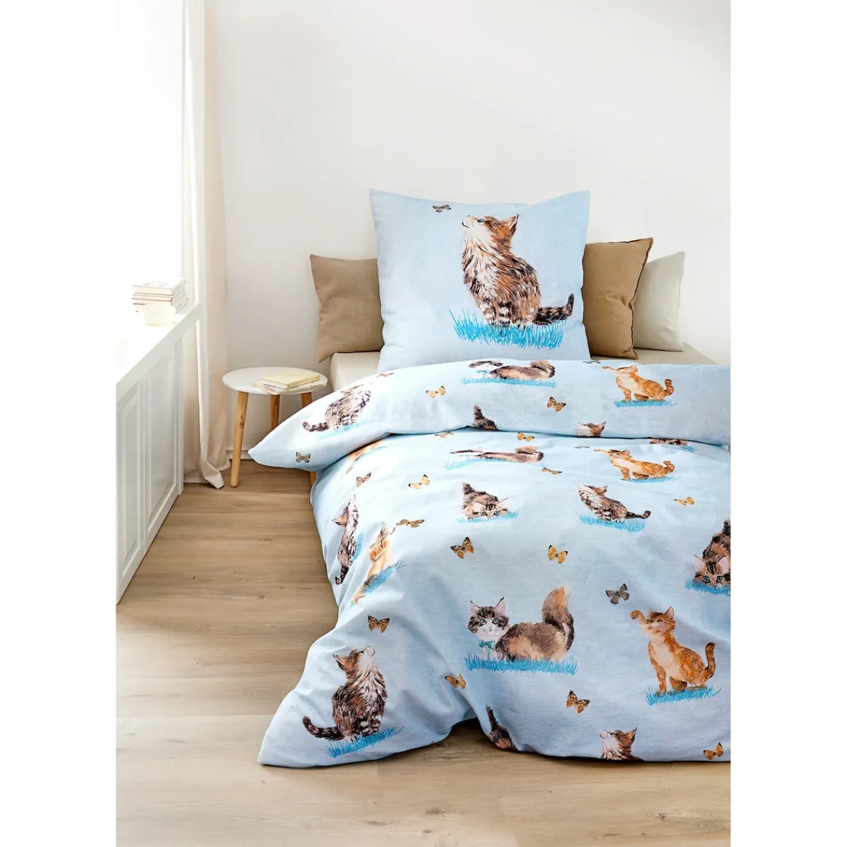 Die moderne Hausfrau Bettwäsche Baumwolle „Kätzchen“, 2-teilig, 135×200 cm hellblau