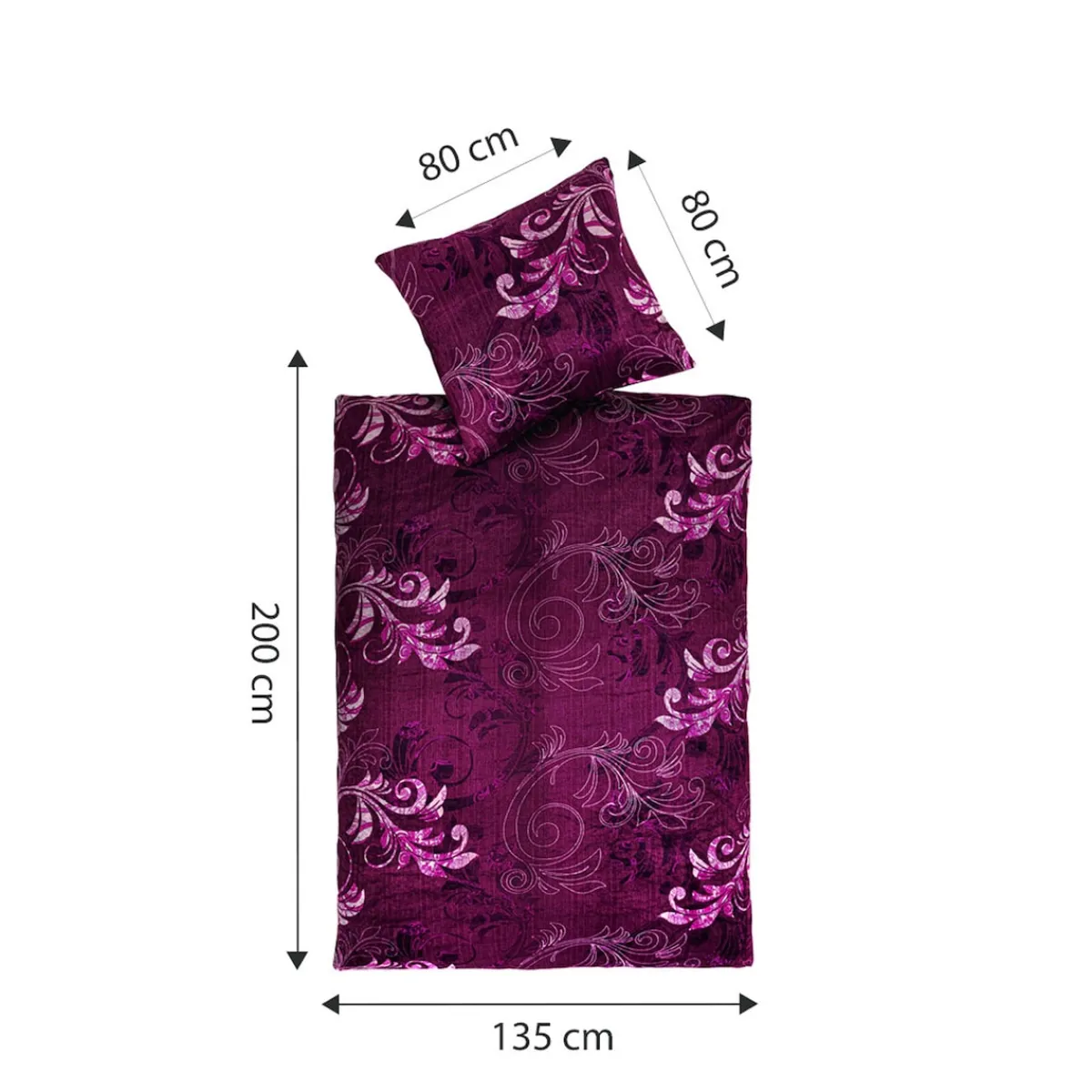 Abmessungen: Bettbezug (LxB): 200×135 cm, Kissenbezug (LxB): 80×80 cm